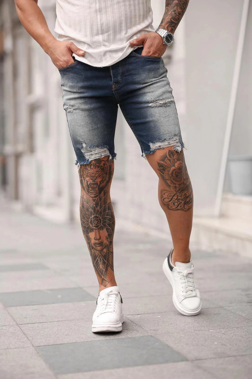 Шорты мужские джинсовые с вышивкой и карманами, уличные шорты в сти...