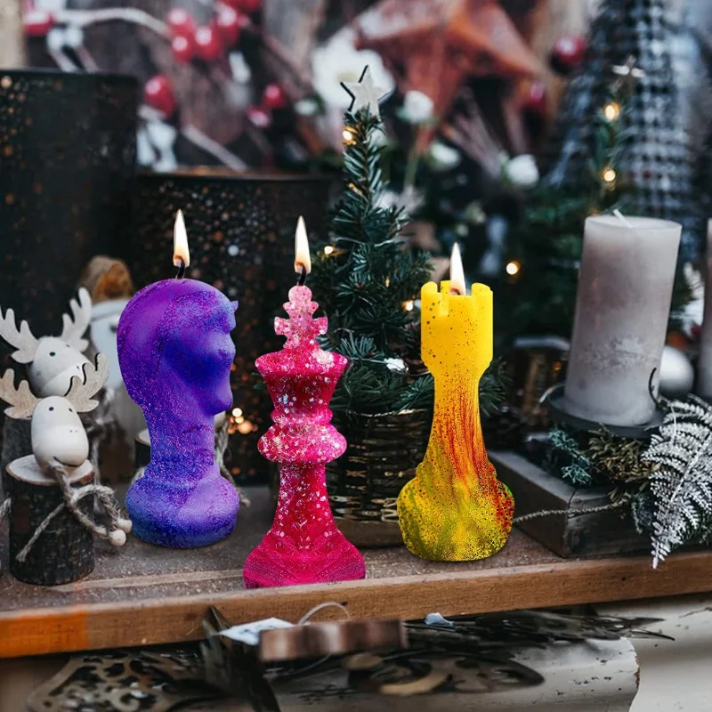 DIY лампы в форме свечи силиконовая формочка в виде шахматных фигур смолы пресс-формы креативный 6 шт набор шоколадных посуда для выпечки домашний набор для изготовления мыла для дома украшения