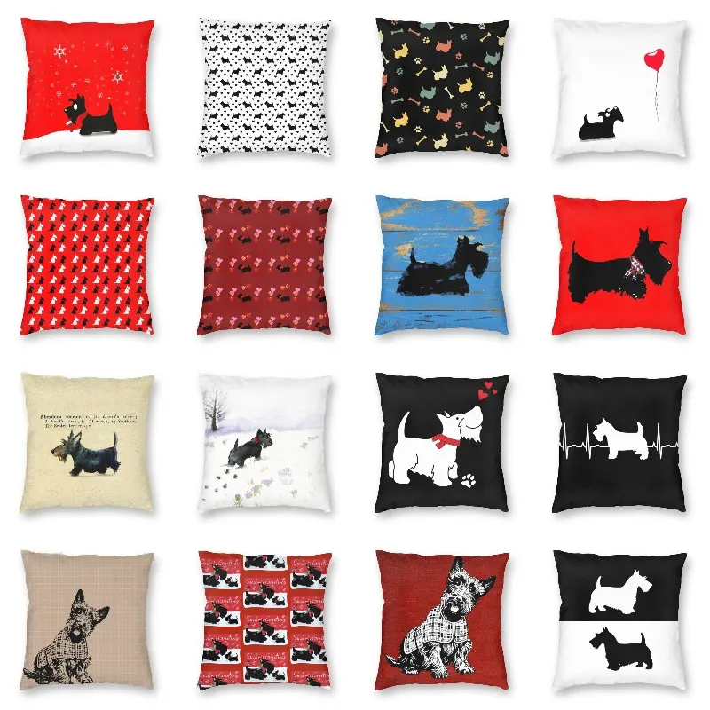 Наволочка для подушки в скандинавском стиле, шотландский терьер, 45...