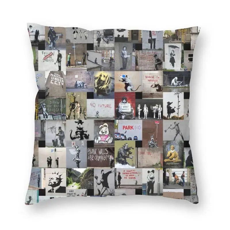 Бэнкси уличного подушка для граффити крышка двухсторонняя печать Ло...