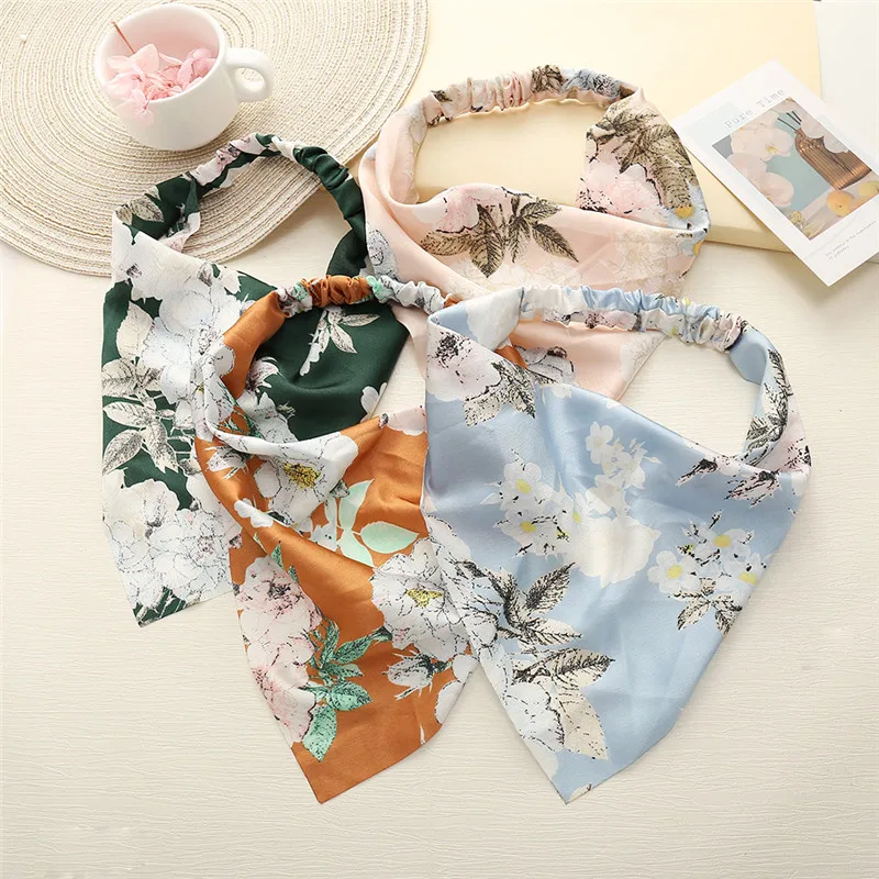 Винтажный шарф для волос с цветочным принтом LETAPI треугольные банданы для женщин 2022 Бохо эластичные повязки для волос повязка на голову аксессуары для волос