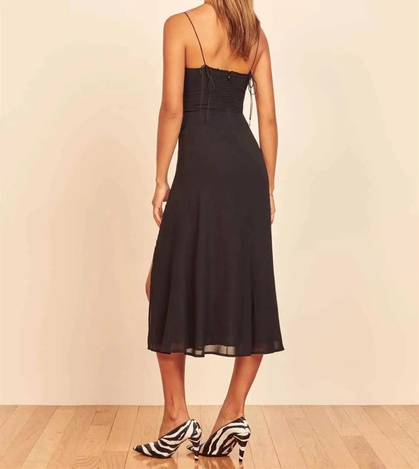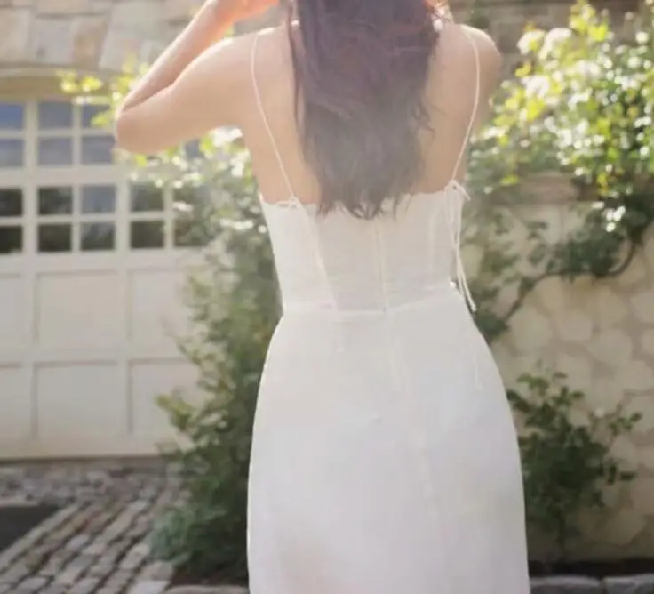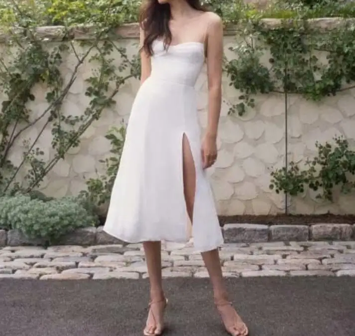 2021 французский женское платье, однотонное белое Цвет отрегулировать шнуровкой Спагетти ремень до середины икры разрез халат вечерние модная длинная одежда из хлопка