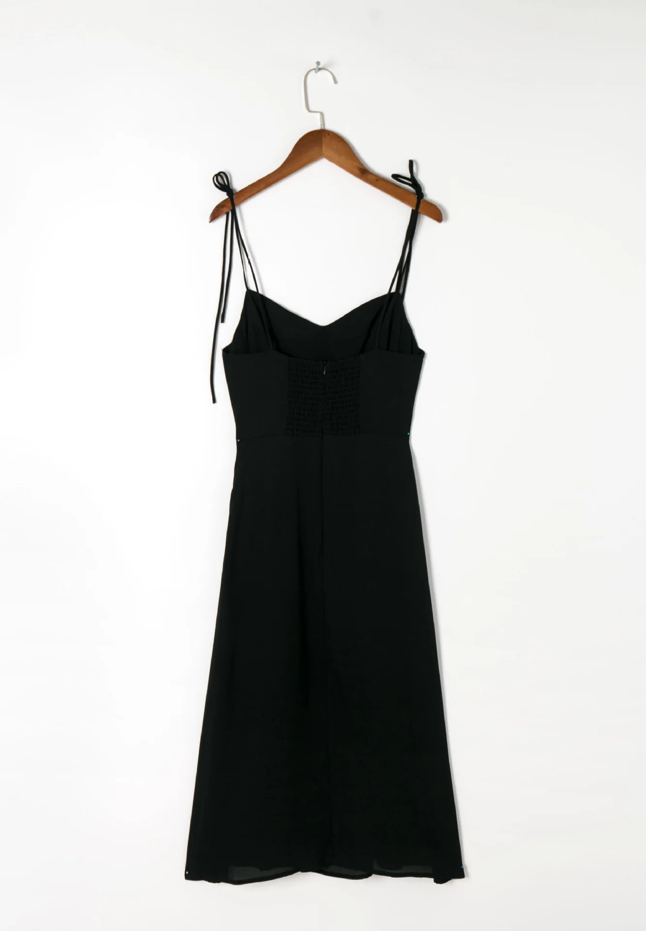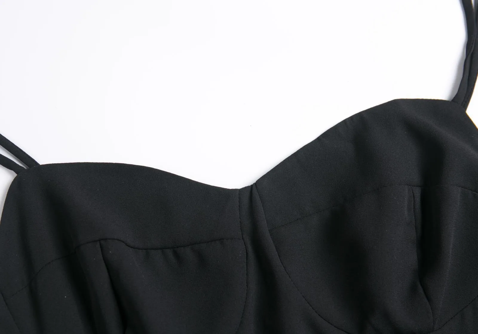 Платье женское на тонких бретелях, однотонное черное платье на завя...