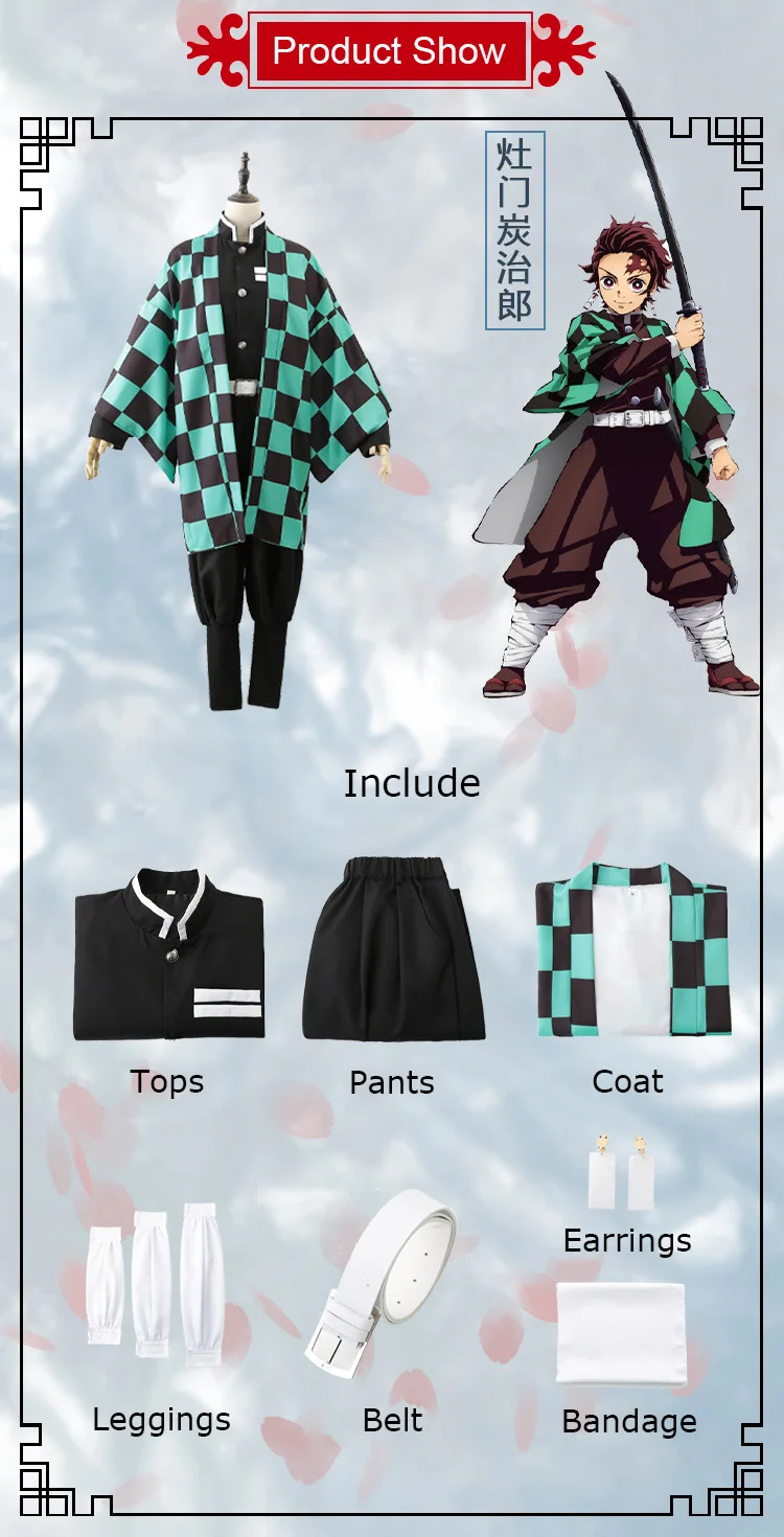 Комплект одежды Kamado Tanjirou: Кимоно, топ, брюки, пояс, чехол для ног