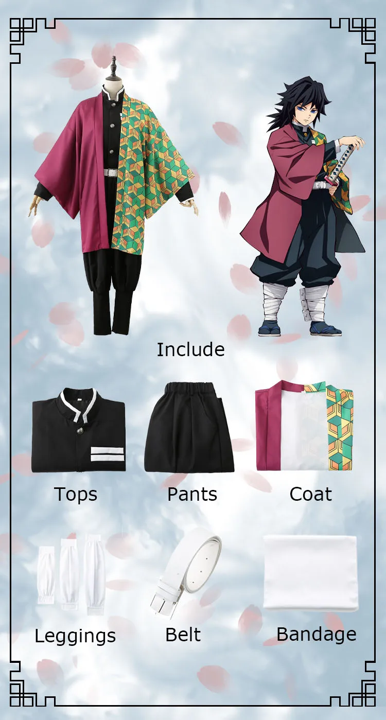 Комплект одежды Tomioka Giyuu: Кимоно, топ, брюки, пояс, чехол для ног