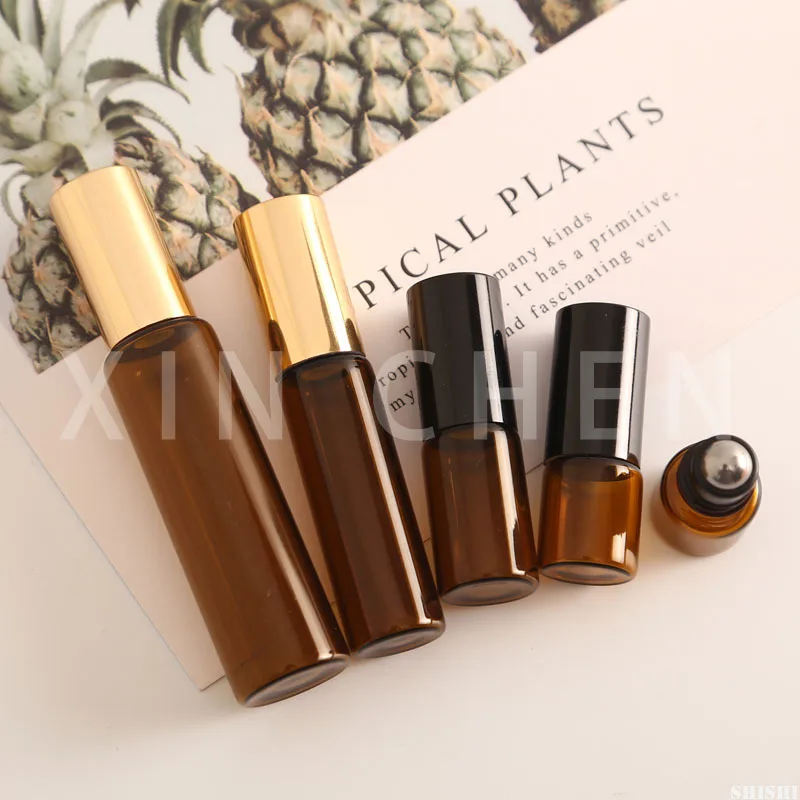 50 шт. Янтарный круглая роликовая бутылка эфирного масла духов многократного пользования пустой Стекло контейнер макияжа флаконы 123510 мл