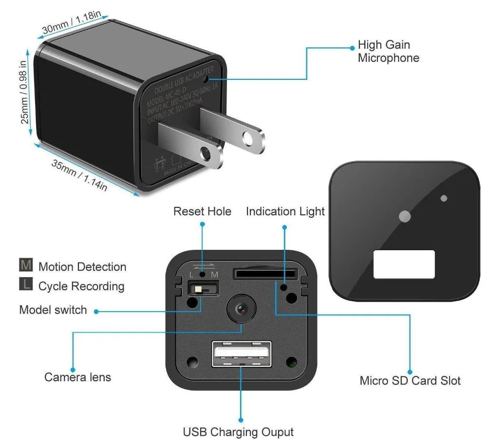 Мини-камера с разъемом 1080P HD, зарядные устройства USB, Беспровод...
