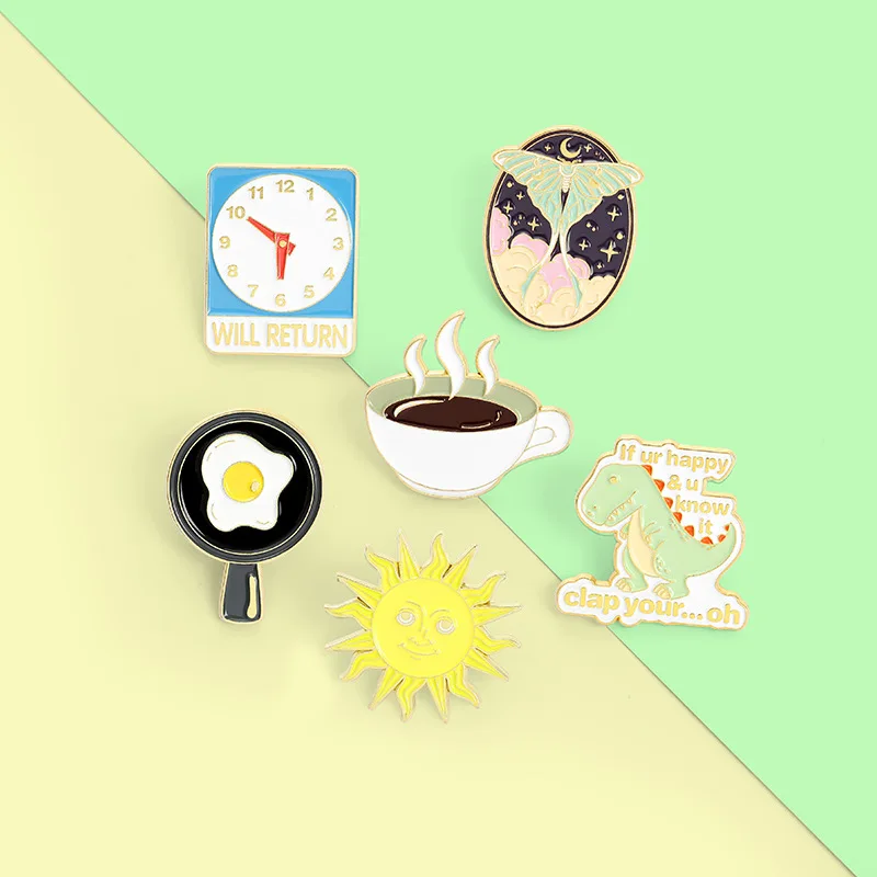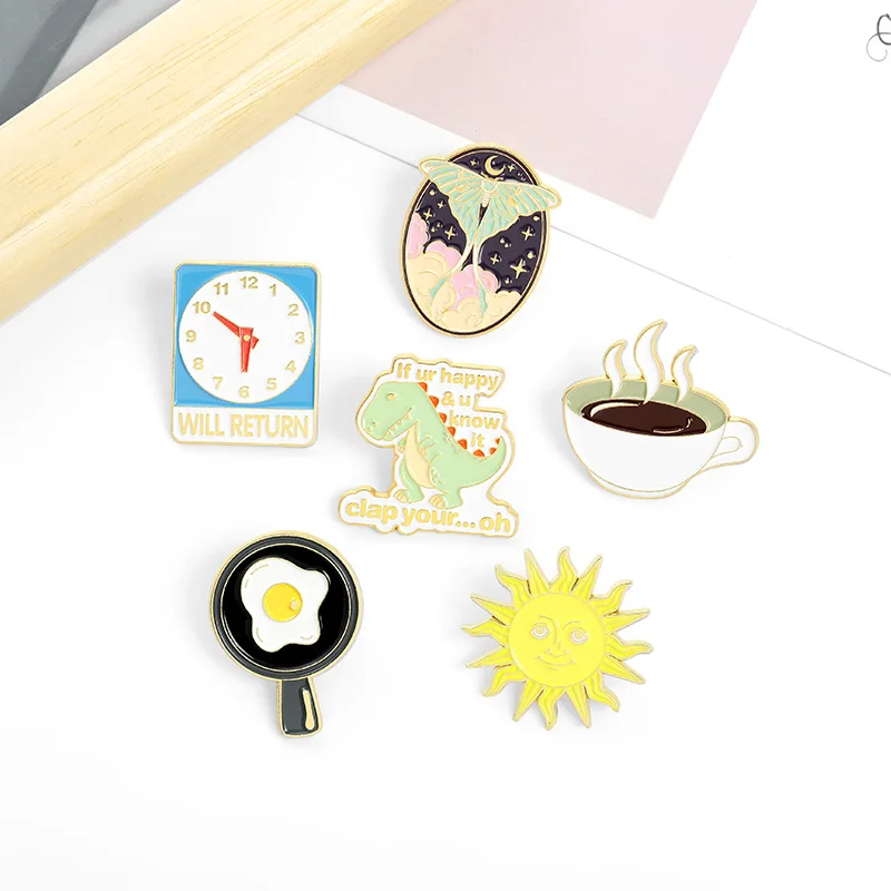 Мультяшный Луна фаза бабочка булавка будильник солнце кофе динозавр...