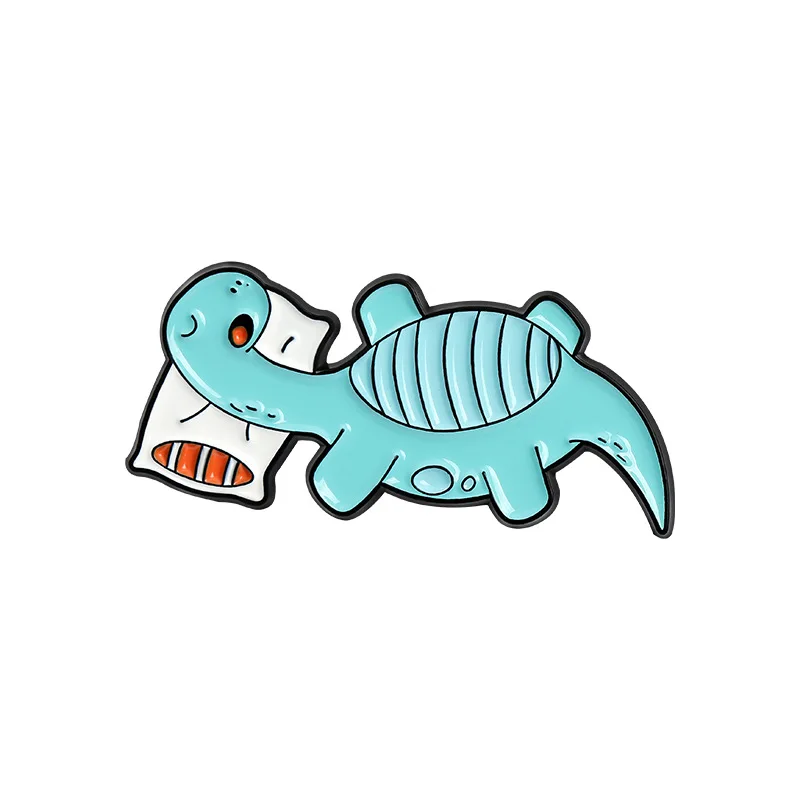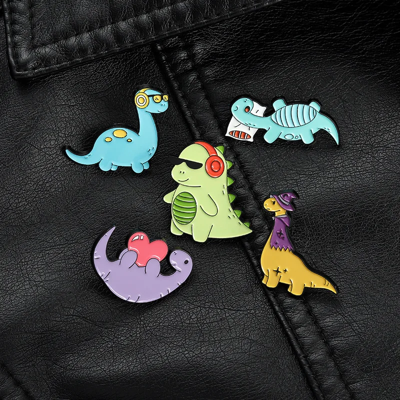Динозавром из мультфильма эмаль на булавке значок музыка Cryptoclidus броши для детей друзей животное Юрского периода значки, ювелирный подарок по оптовой цене
