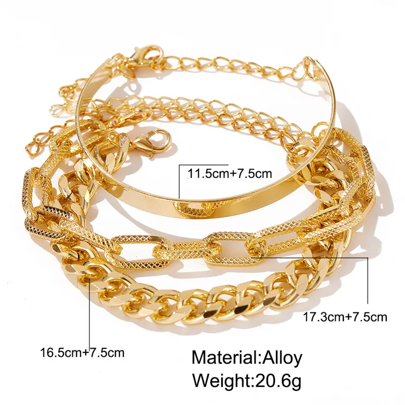 3 шт.компл. женский многослойный браслет-цепочка в стиле панк золот...
