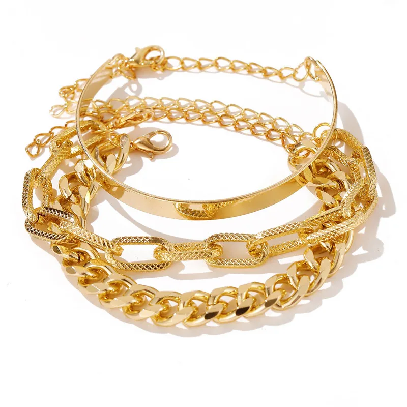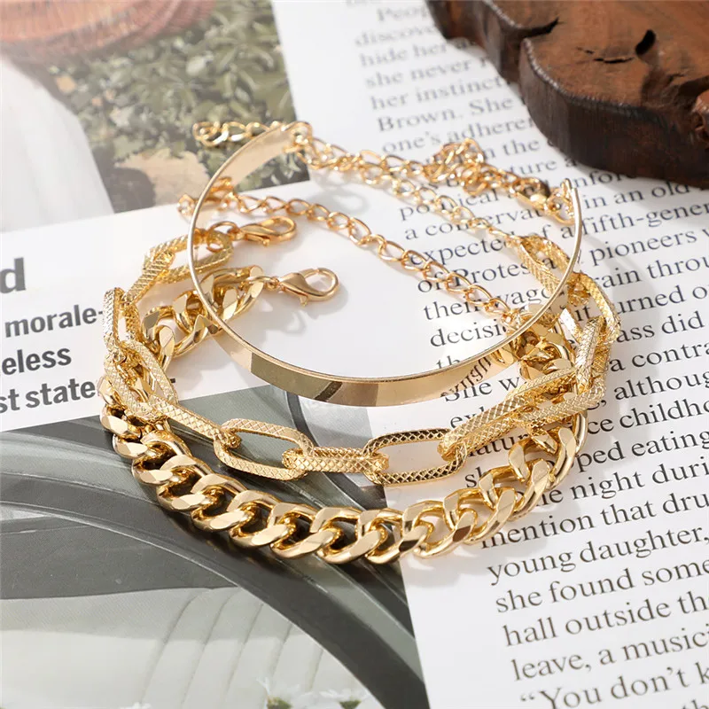 Набор женских браслетов с цепочкой из кубинской цепи, в стиле панк