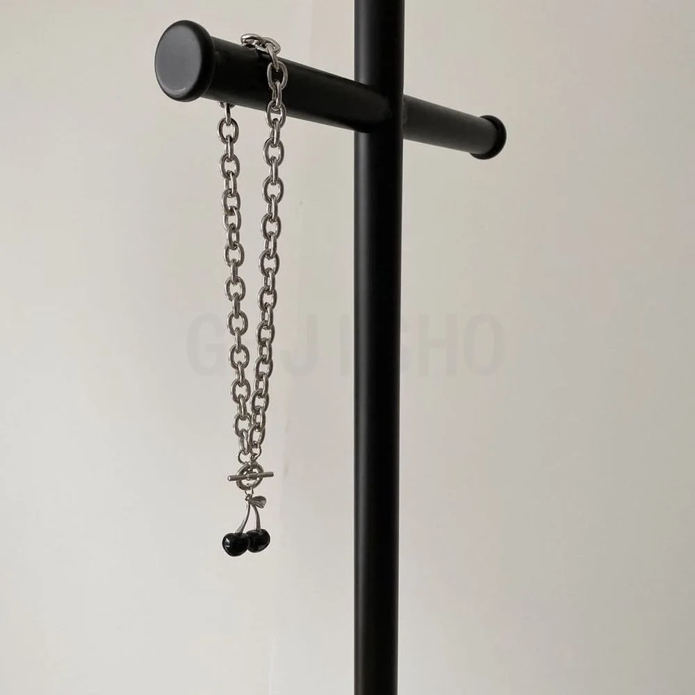 Цепочка с подвеской в виде черной вишни, металлическая, серебристая