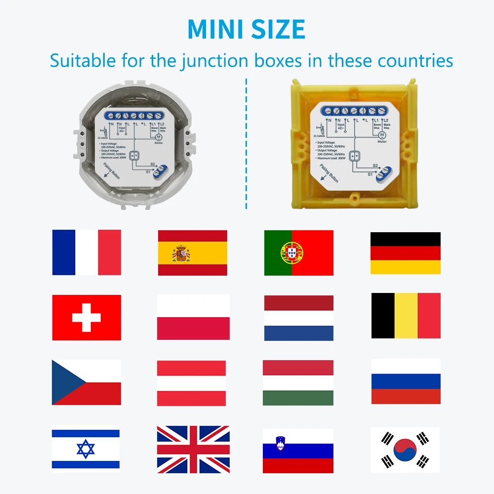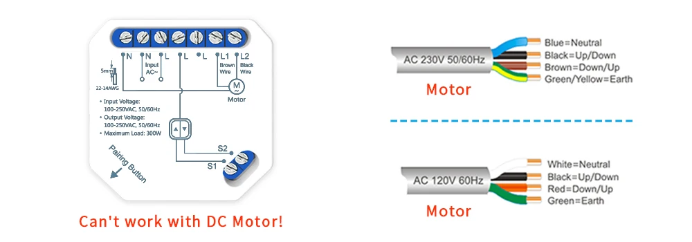 -Этот модуль не может работать с клавишным выключателем, но только кнопка и тип обратного переключателя, такие же, как в видео, (кнопочный и задний переключатель), если у вас есть какие-либо вопросы, пожалуйста, свяжитесь с продавцом перед покупкой. -После установки модуля вы не можете приостановить занавес с помощью оригинального настенного выключателя, но можете использовать пульт дистанционного управления или приложение, чтобы приостановить его. -Провод L1, провод L2 (для открытия и закрытия) и нейтральный провод вашего двигателя, как правило, нейтральный цвет провода синий, пожалуйста, не устанавливайте выключатель с любым двигателем постоянного тока (5-24 В), для этого требуется входное напряжение 100-250В переменного тока