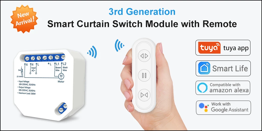 Различные способы управления электрические шторы Жалюзи -Прикоснитесь к выключателю (открыть, закрыть только, без паузы) -Управление приложением (открытие, пауза, закрытие) -Используйте пульт дистанционного управления занавесками, (открыть, использовать Pa, закрыть) диапазон управления до 30 м -Голосовое управление с Google Home, Amazon Alexa, (Откройте, закройте, и вы можете создать сцену в приложении smart life, чтобы активировать, чтобы остановить занавес, и сделать рутину в Google home, или приложение alexa для активации, чтобы остановить занавес голосовым управлением) Встроенный радиочастотный модуль позволяет дистанционно управлять жалюзи, даже если у вас возникли проблемы с WIFI