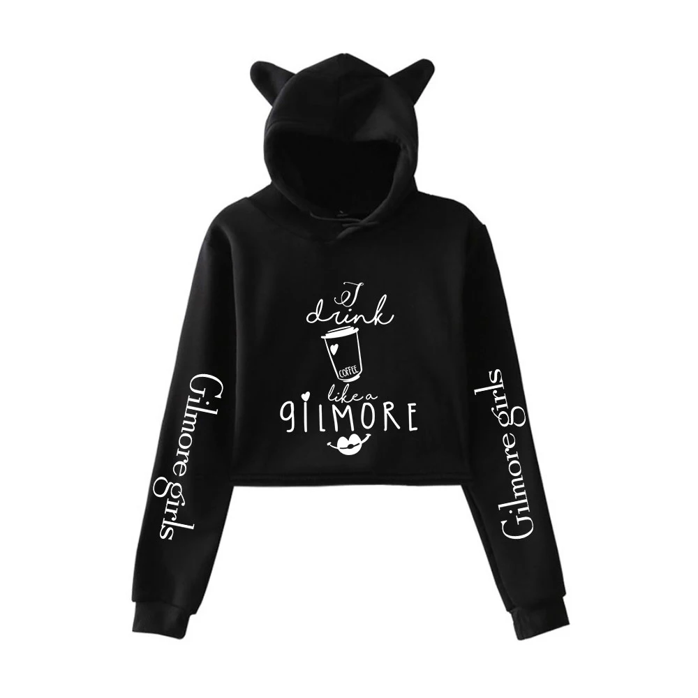 Укороченные толстовки с кошачьими ушками, женские свитшоты в стиле ...