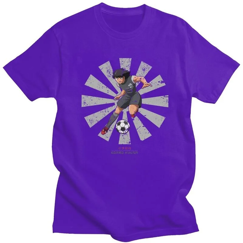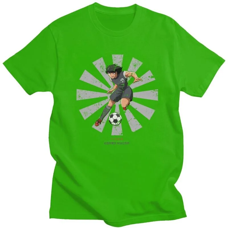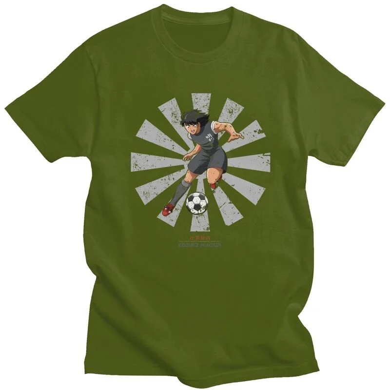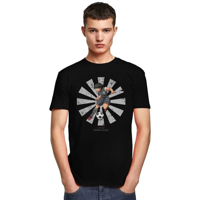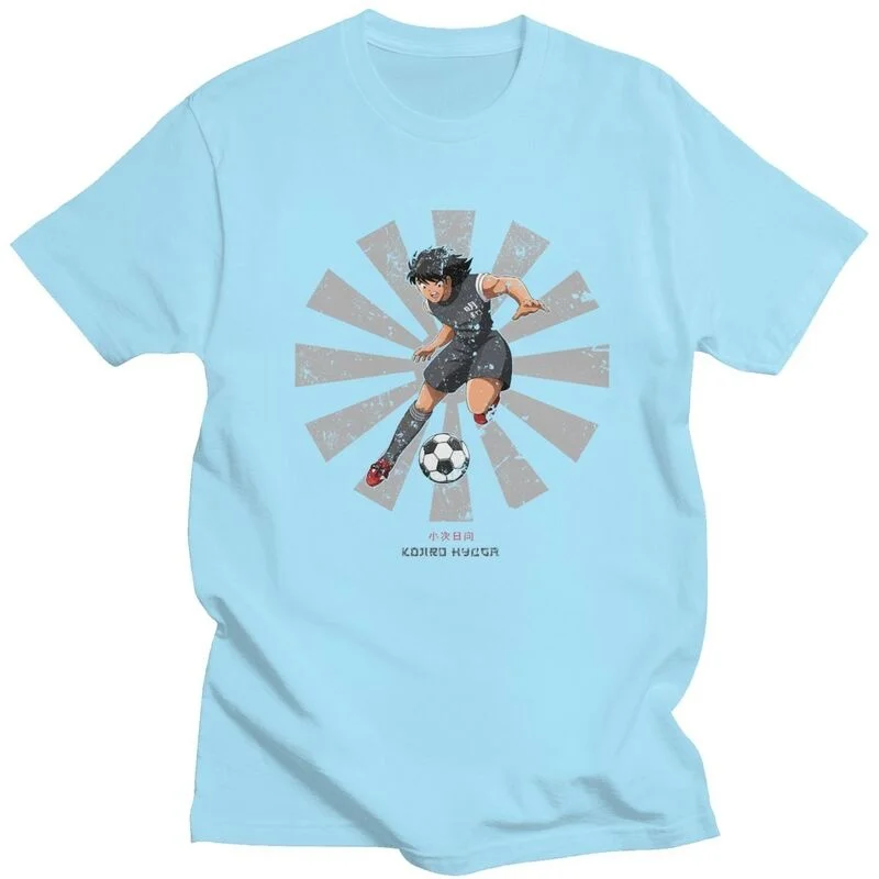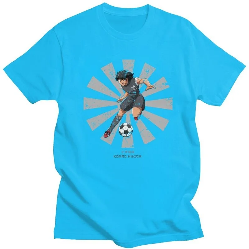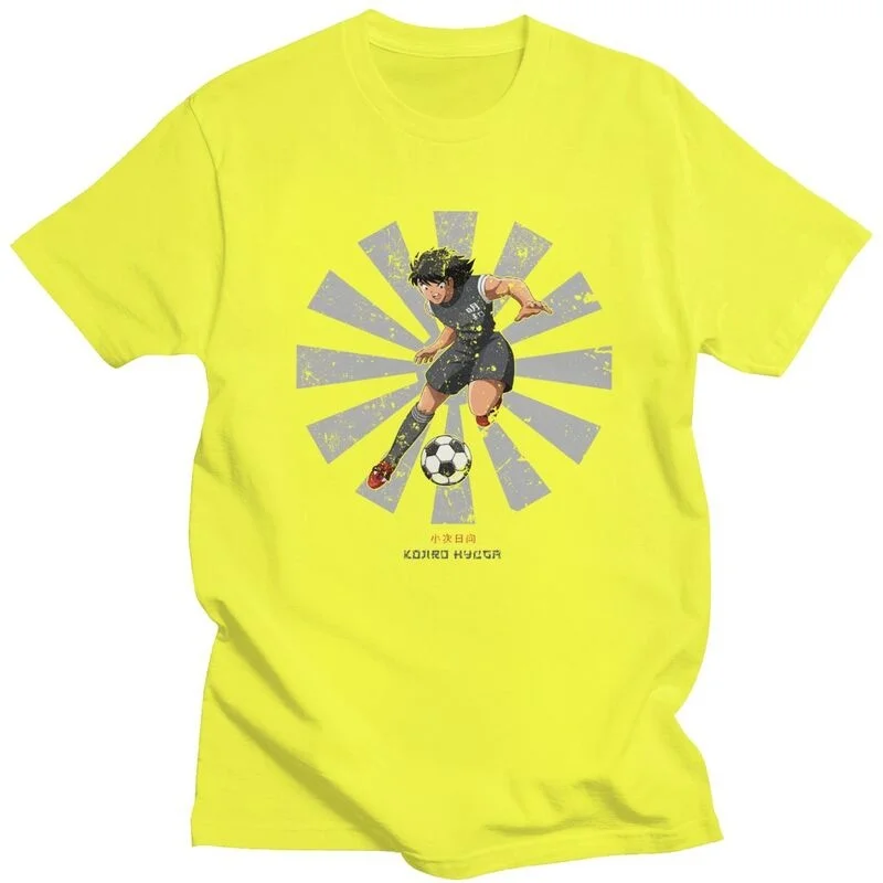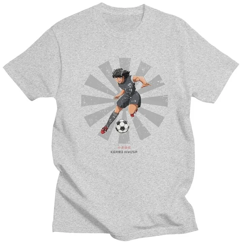 Футболка мужская свободного кроя с коротким рукавом, тенниска из чистого хлопка с аниме Kojiro Hyuga Retro Captain Tsubasa