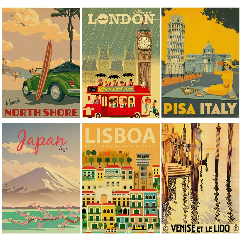Винтажные плакаты с изображением знаменитого городского пейзажа, ме...