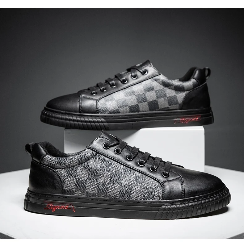 Мужские кожаные кроссовки, Повседневная Теплая обувь на плоской под...