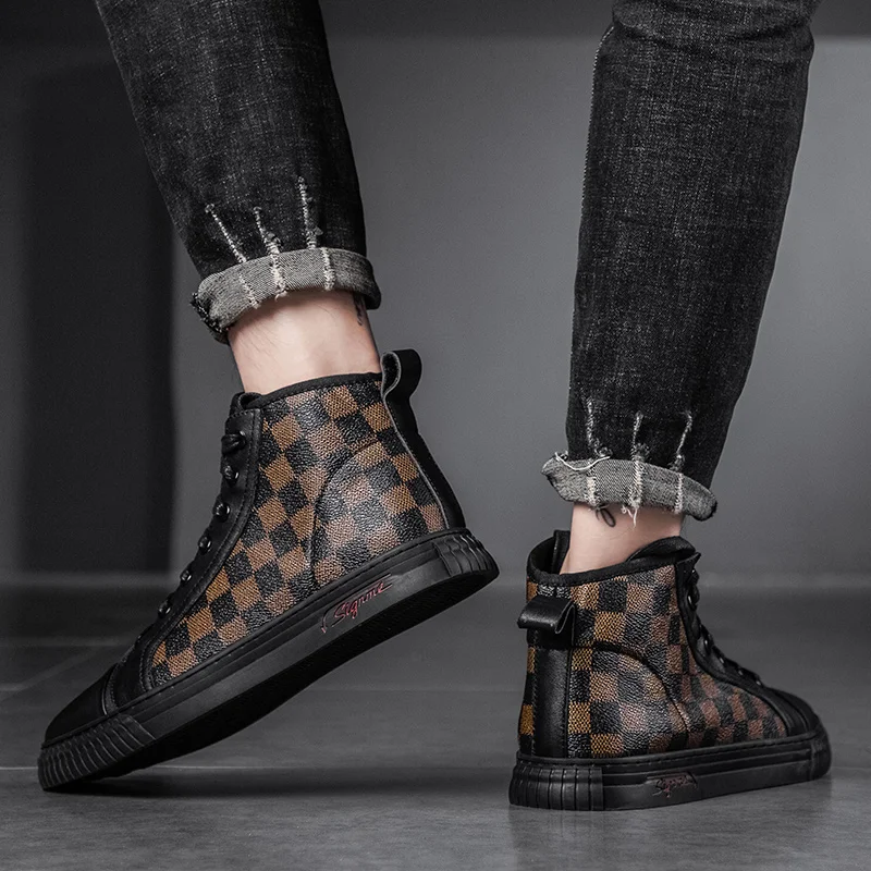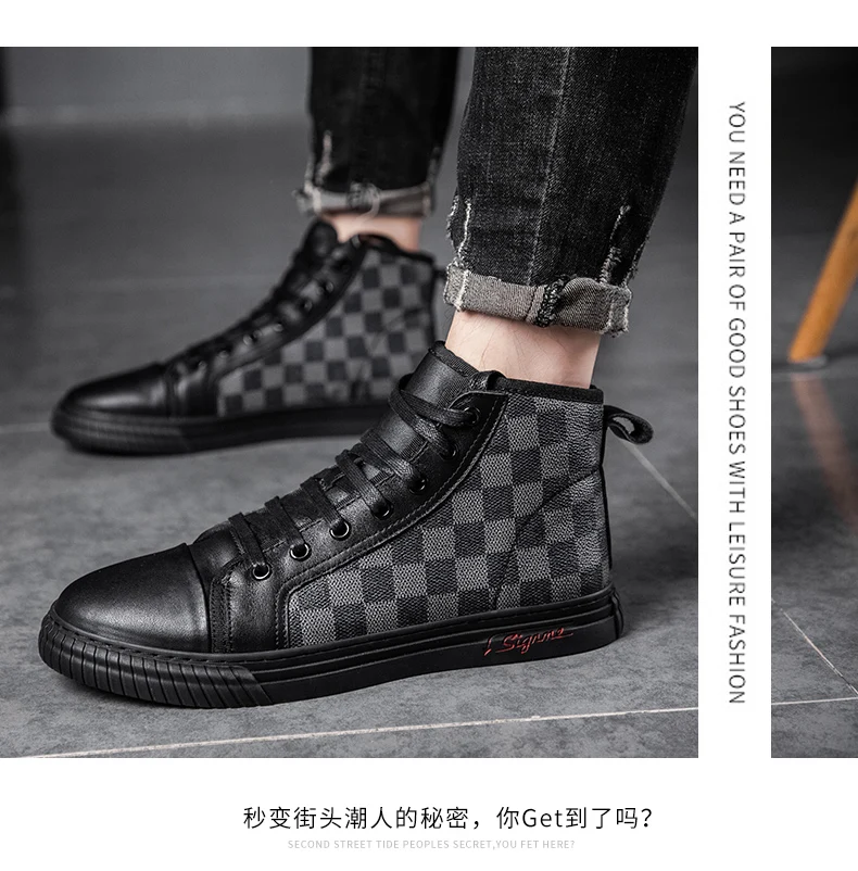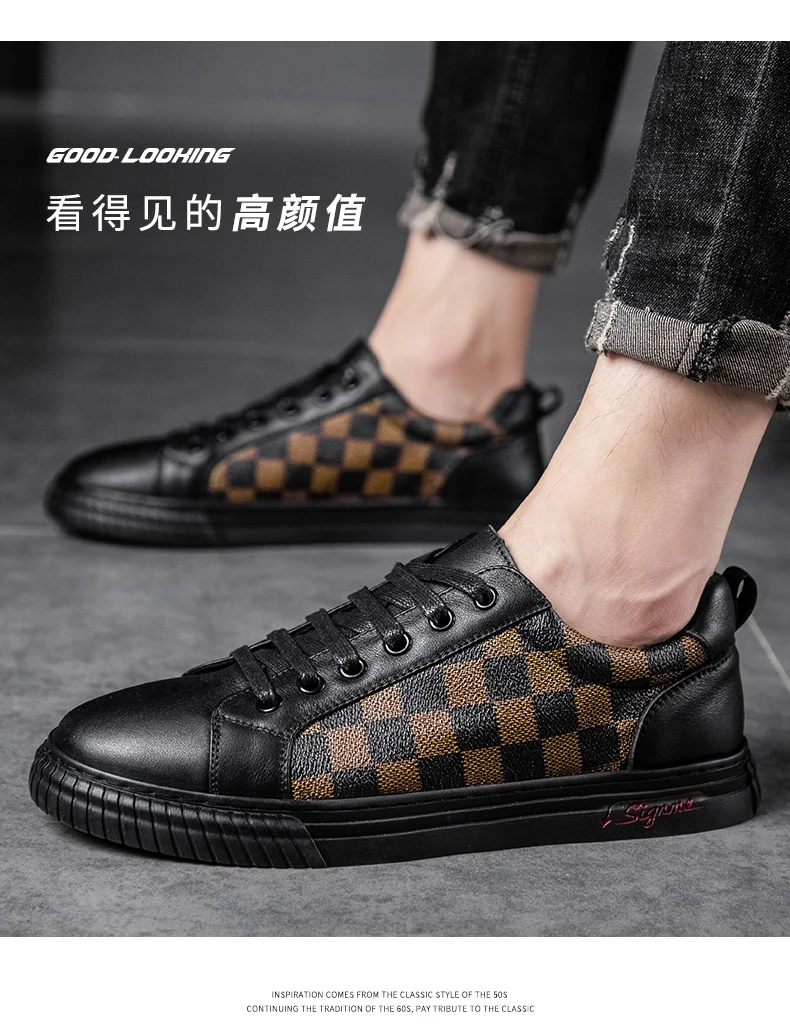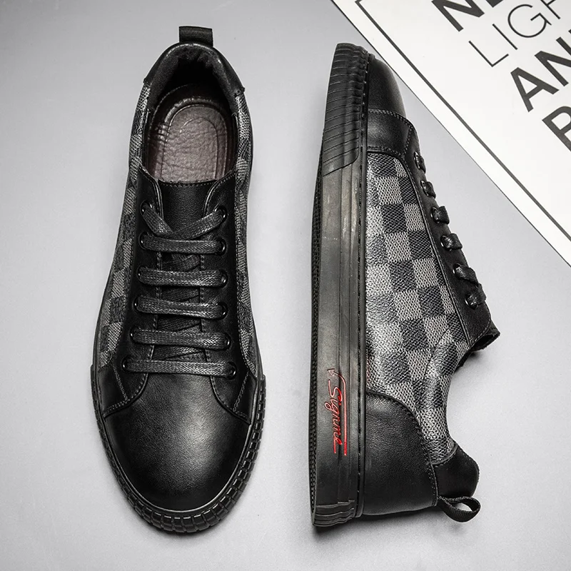 Новинка 2021, Высококачественная мужская повседневная обувь, модные кожаные Низкие кроссовки в простом стиле, высокие трендовые мужские туфли в стиле одинакового стиля