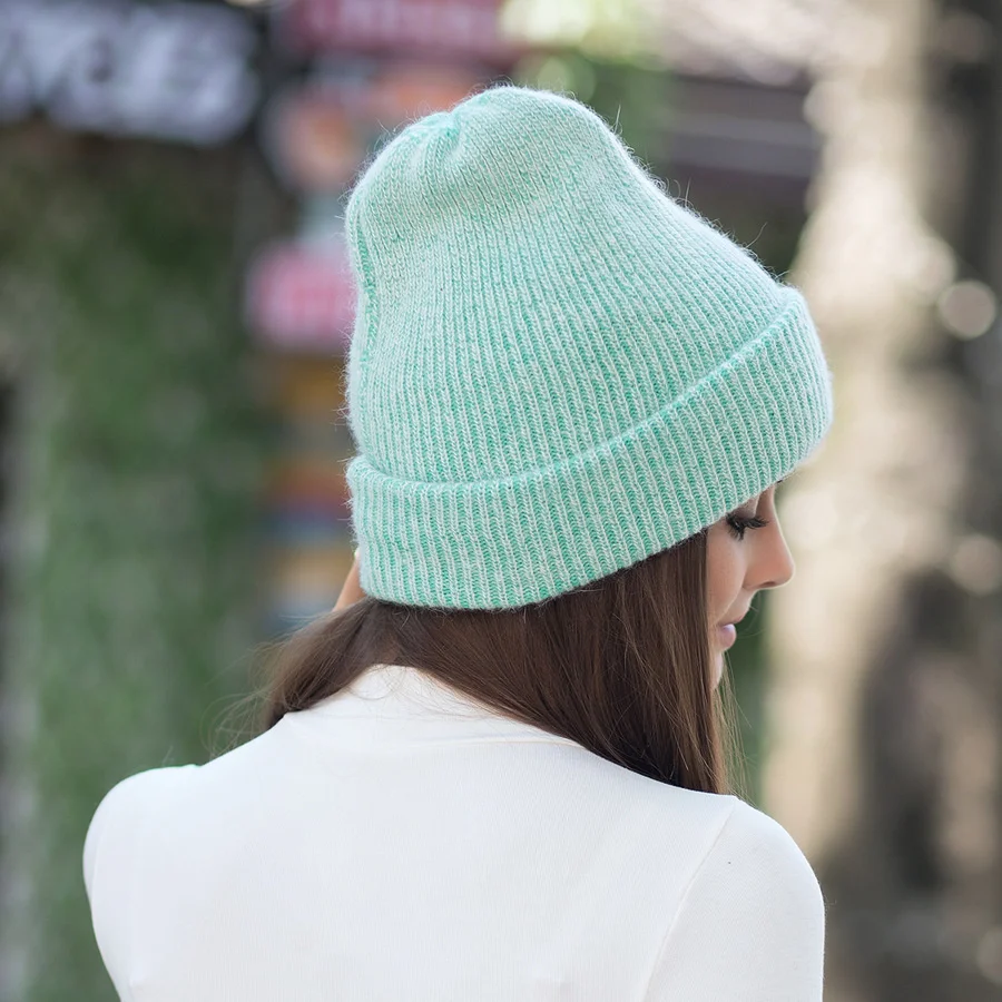 Простая вязаная шапка из кроличьего меха для женщин, зимняя шапка, шапка, теплая шерстяная шапка, шапка для женщин