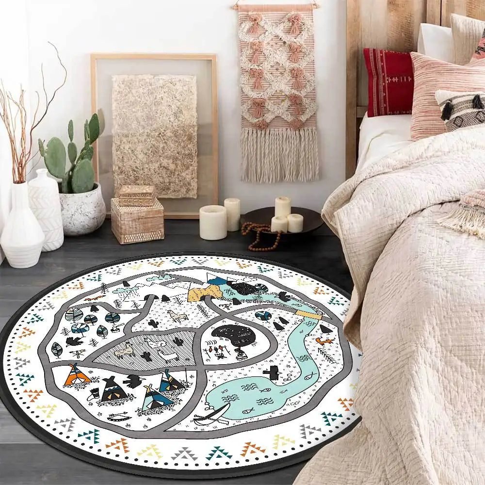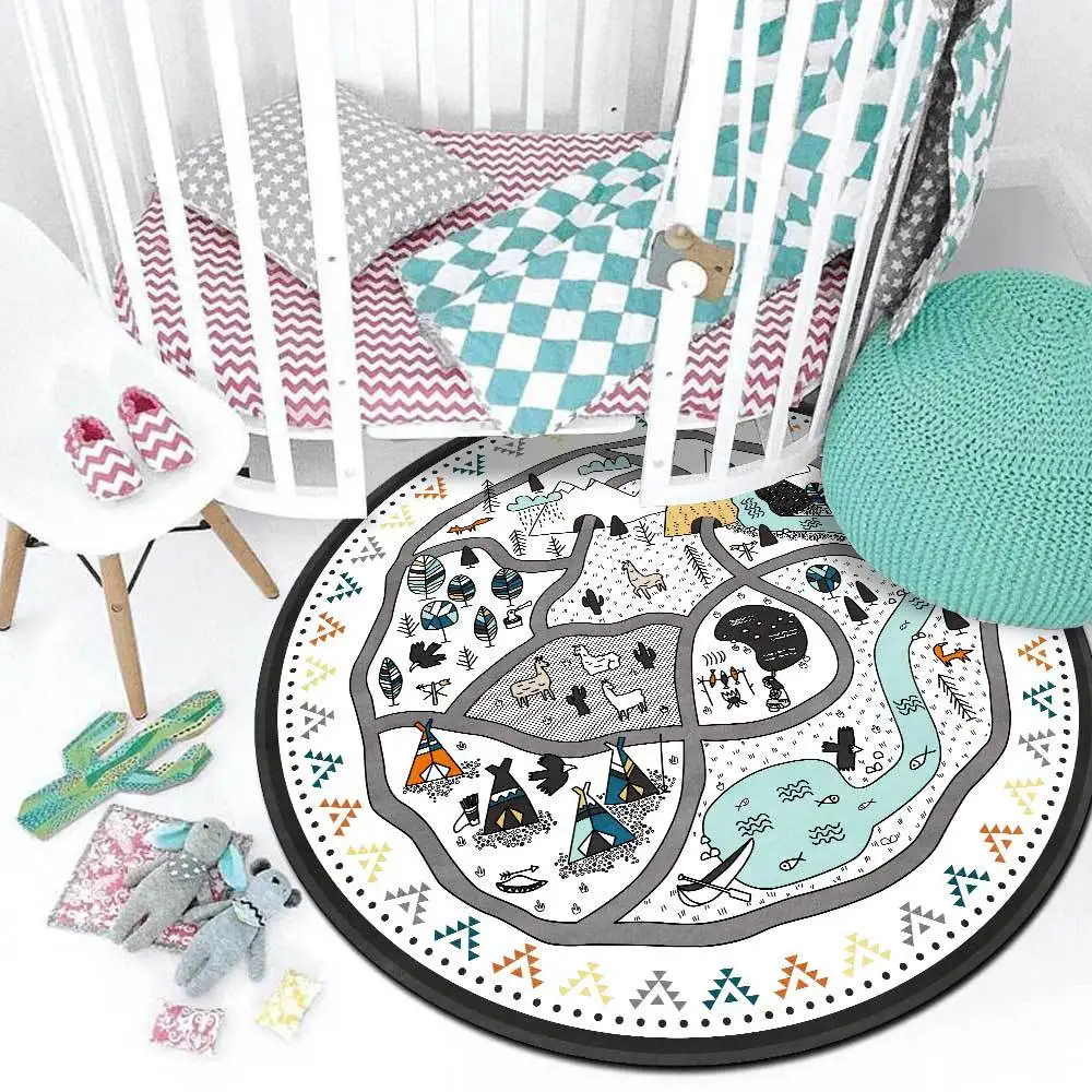 Nordic мультфильм ковры милый лес Trail черно-белый зеленый коврик черного цвета Детская комната круглый коврик
