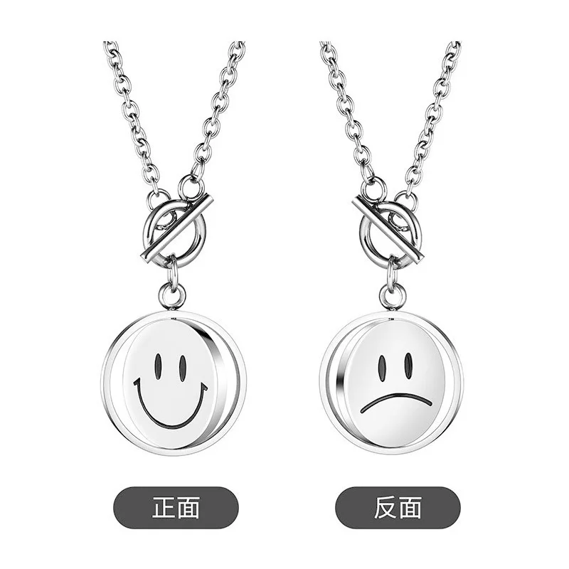 Вращающееся ожерелье со смайликом и лицом плача для мужчин и женщин, модное двустороннее крутое выражение улицы в стиле хип-хоп