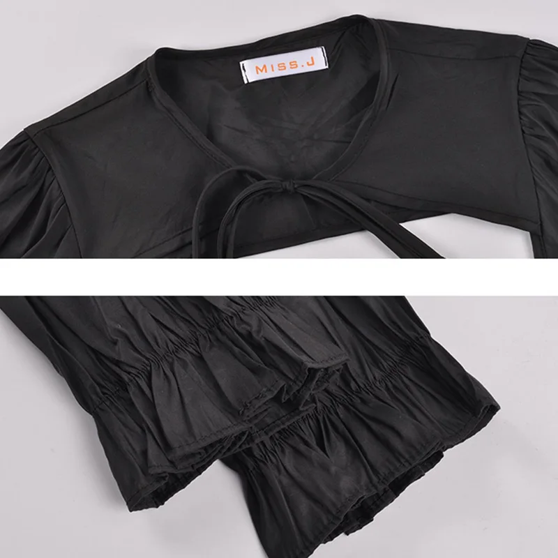 Шаль женская летняя черная, с длинными рукавами-фонариками, на завязках
