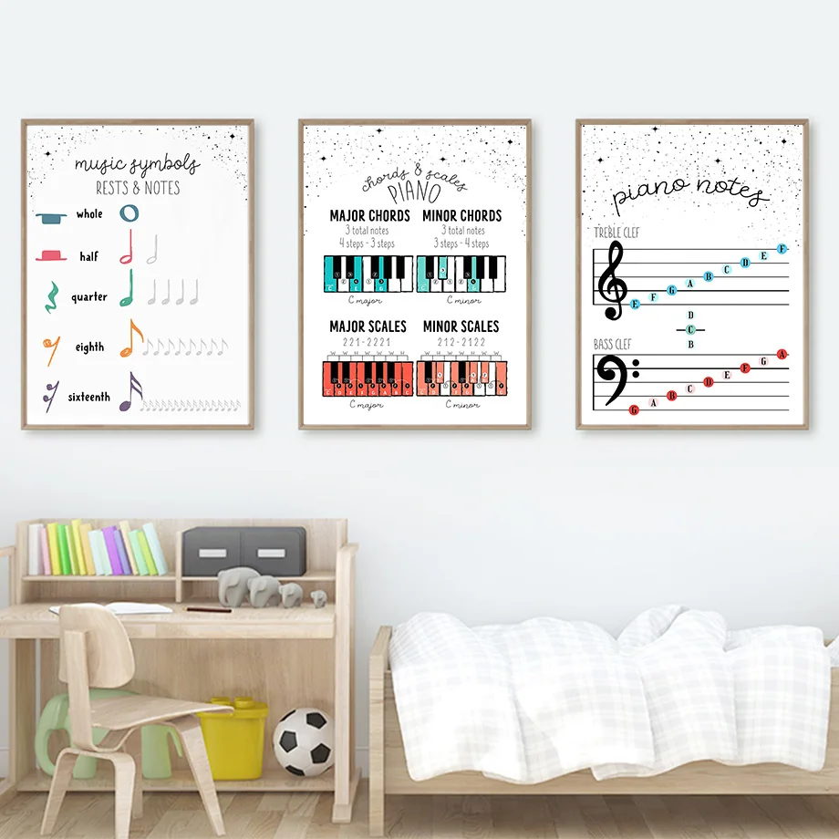 Фортепиано ноты основной аккорд тройной бас ключ настенное Искусство Холст Картина скандинавские плакаты и принты настенные картины для декора музыкальной комнаты