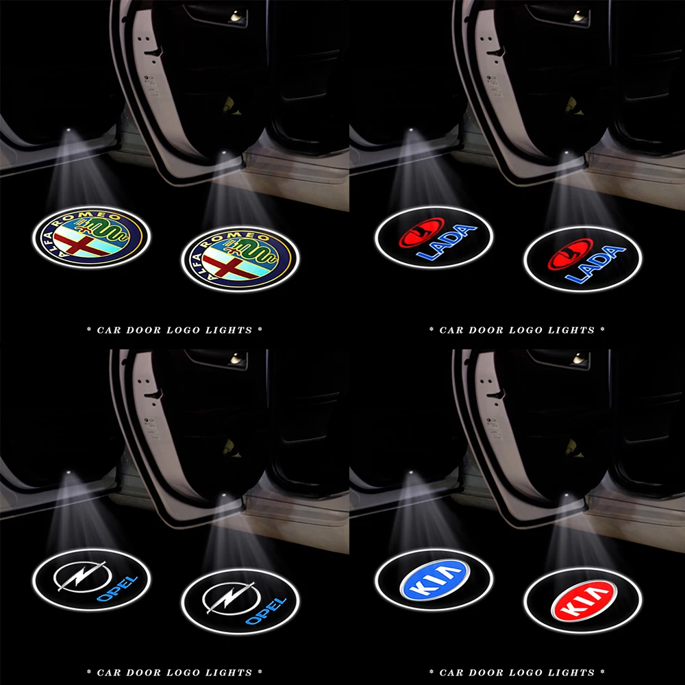 2 шт.компл. прожекторная лампа, автомобильная светодиодная беспроводная лампа с логотипом двери автомобиля, приветственная декоративная лампа для Kia Seat Fiat Mini Renault Toyota Mazda