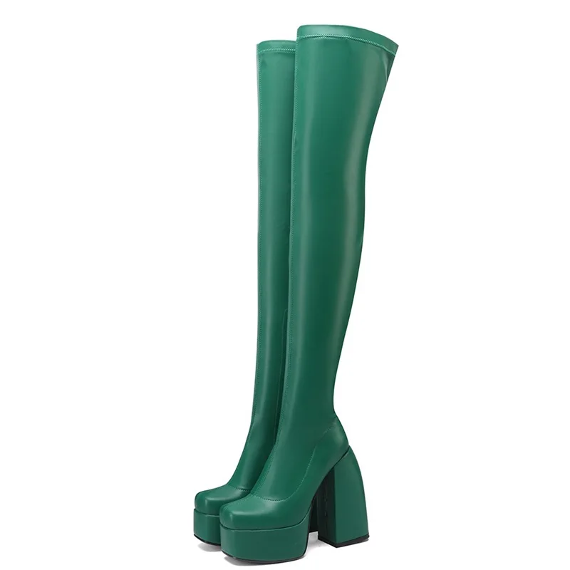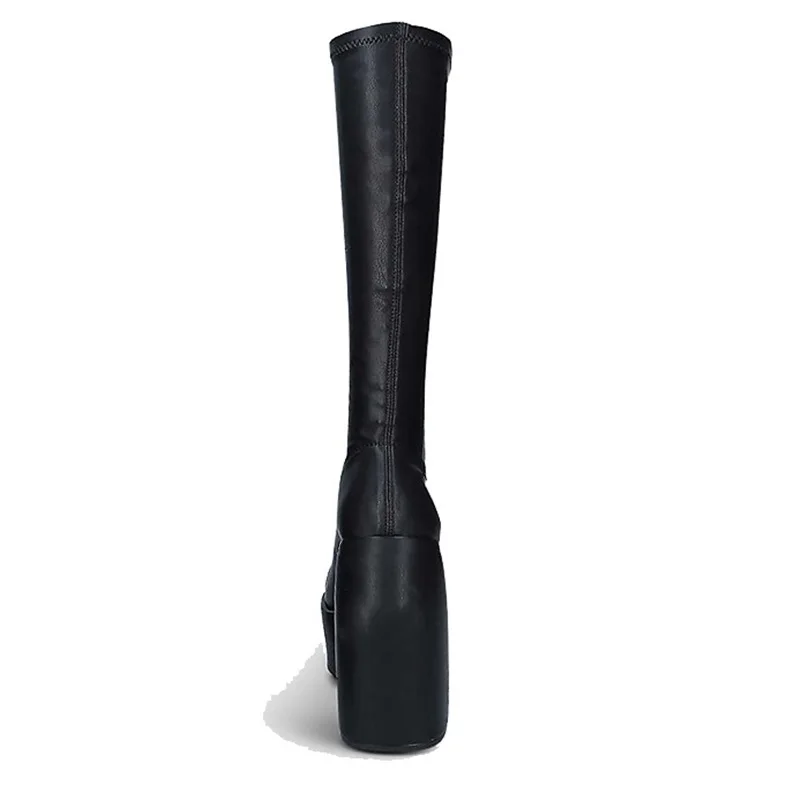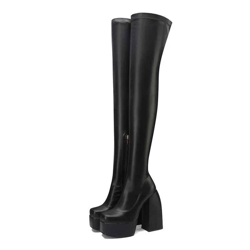 В римском стиле, в стиле панк на осень-зиму замшевые сапоги из эластичного материала, обувь из микрофибры; Женские ботфорты на высоком каблуке; Черная обувь на толстой подошве и платформе ботинки с высоким голенищем ботинки