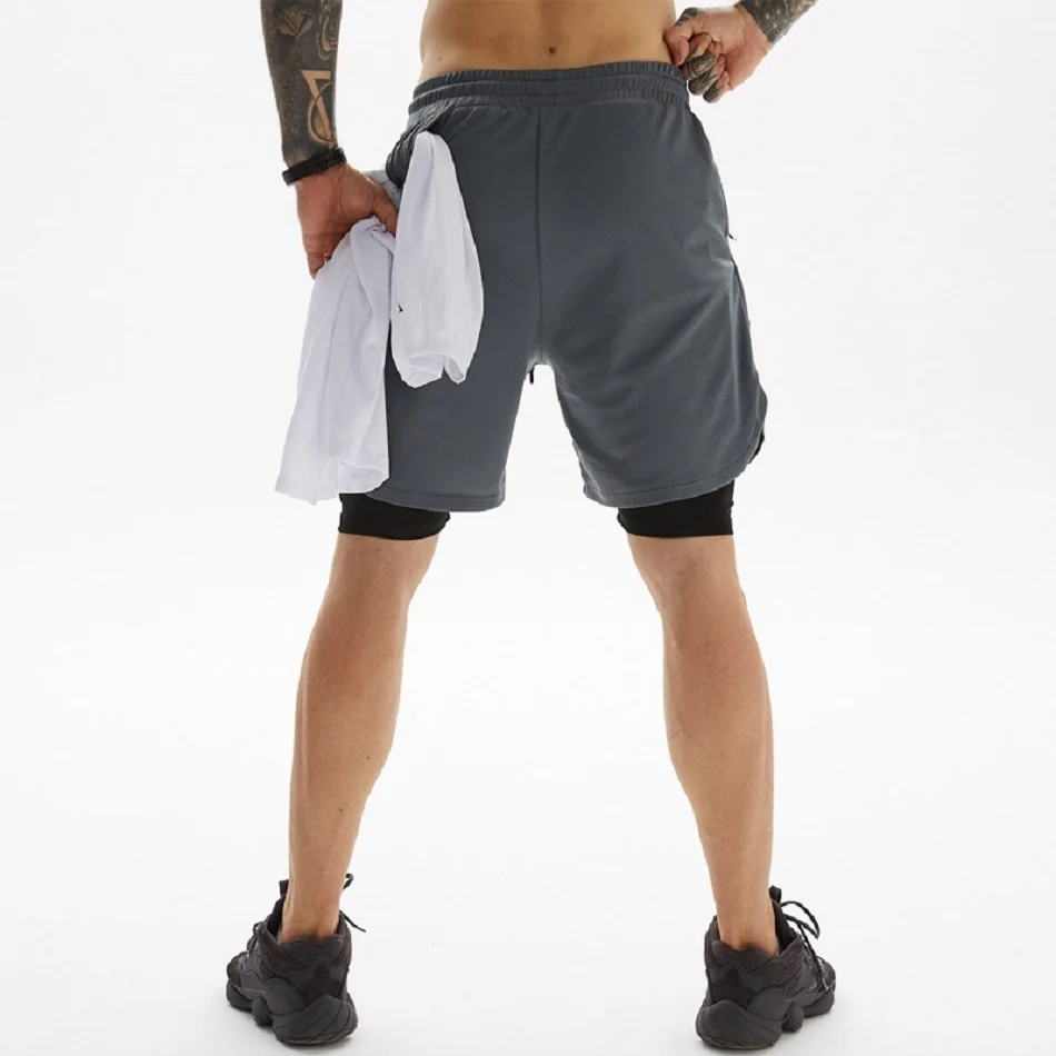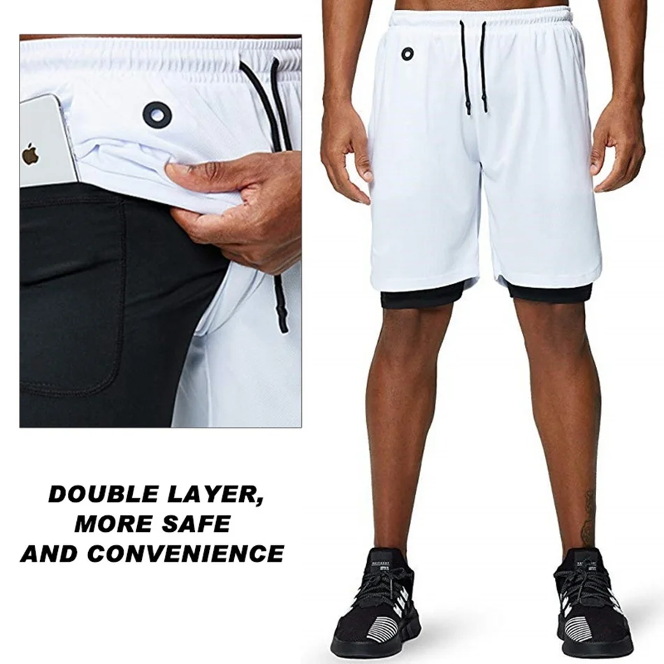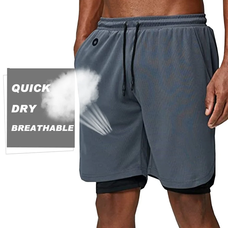 Мужские шорты для бега, мужские спортивные шорты для фитнеса, тренажерного зала, быстросохнущие спортивные шорты для тренировок в тренажерном зале, спортивные тренировочные двухуровневые летние мужские шорты, 2020