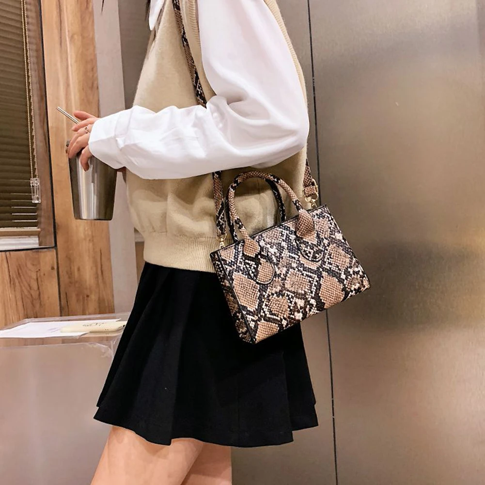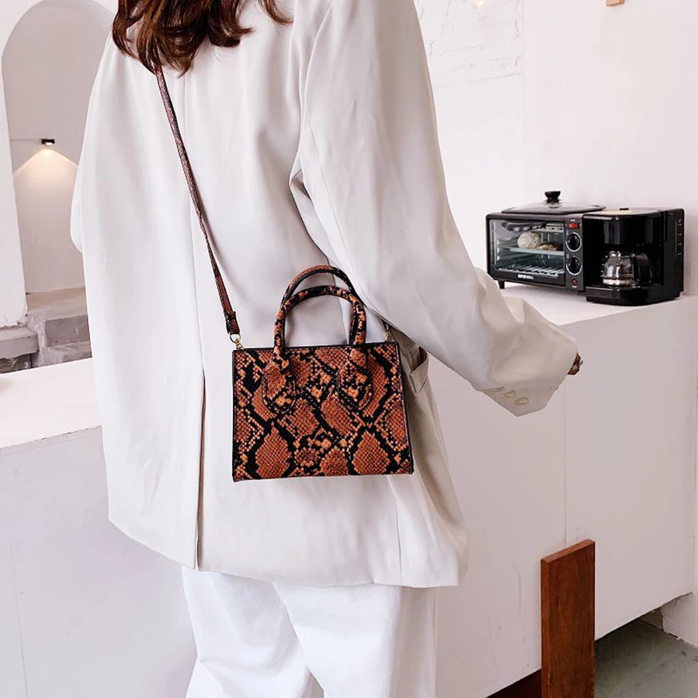 Сумка-тоут женская из экокожи, Модный повседневный саквояж кросс-боди с принтом змеиной коровы, дорожный чемоданчик на плечо с ручками, 2021