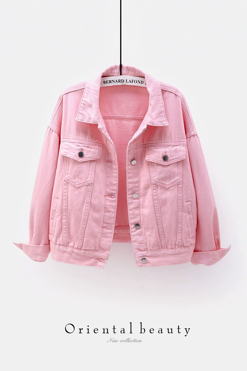 Женская джинсовая куртка, Повседневная Свободная джинсовая куртка в уличном стиле, осенняя модная верхняя одежда розового, красного и белого цветов, 2022