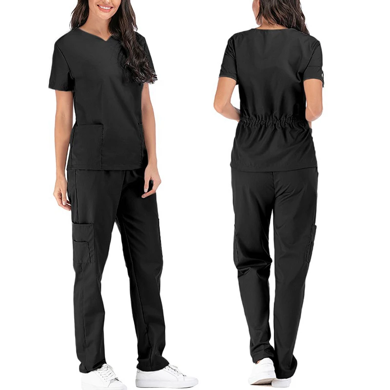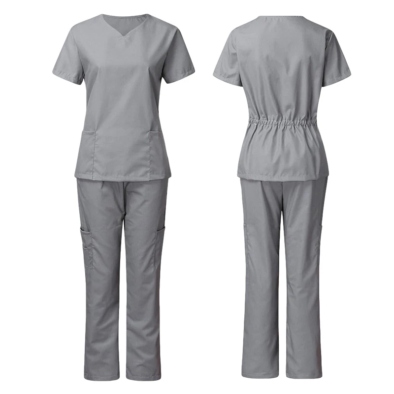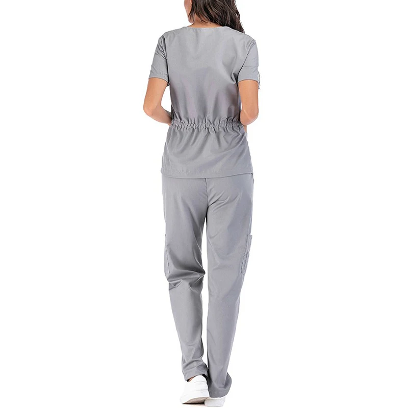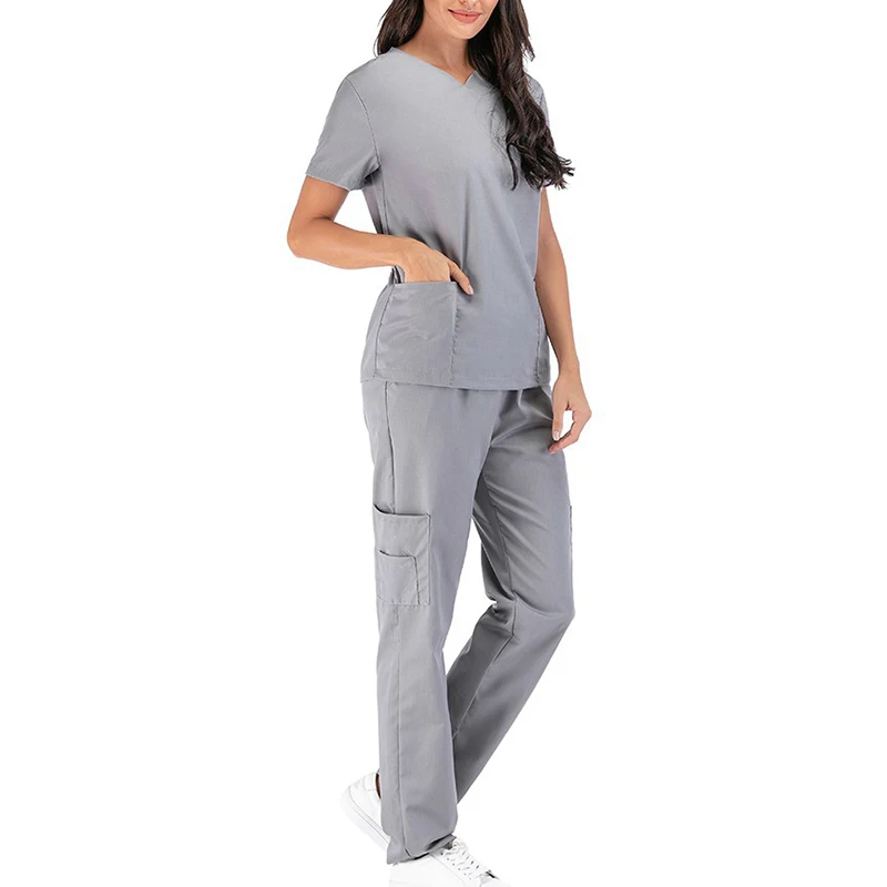 S-2XL однотонный короткий рукав v-образным вырезом кормящих Рабочие комбинезоны топ со штанами мягкая обувь; Унисекс; Равномерные спецодежды