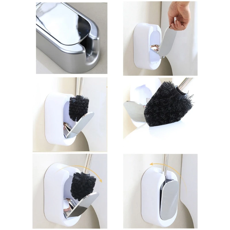 Щетка для унитаза настенная с держателем, набор чистящих щеток из нержавеющей стали, аксессуары для ванной комнаты, без гвоздей