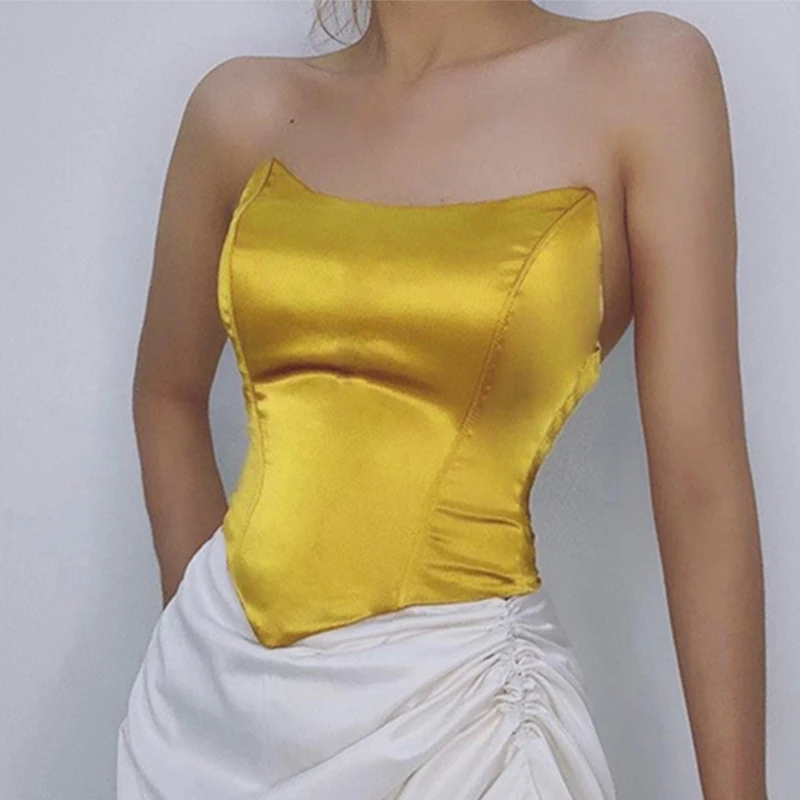 2021 атласный корсет, короткий Топ без бретелек, зеленый летний сек...