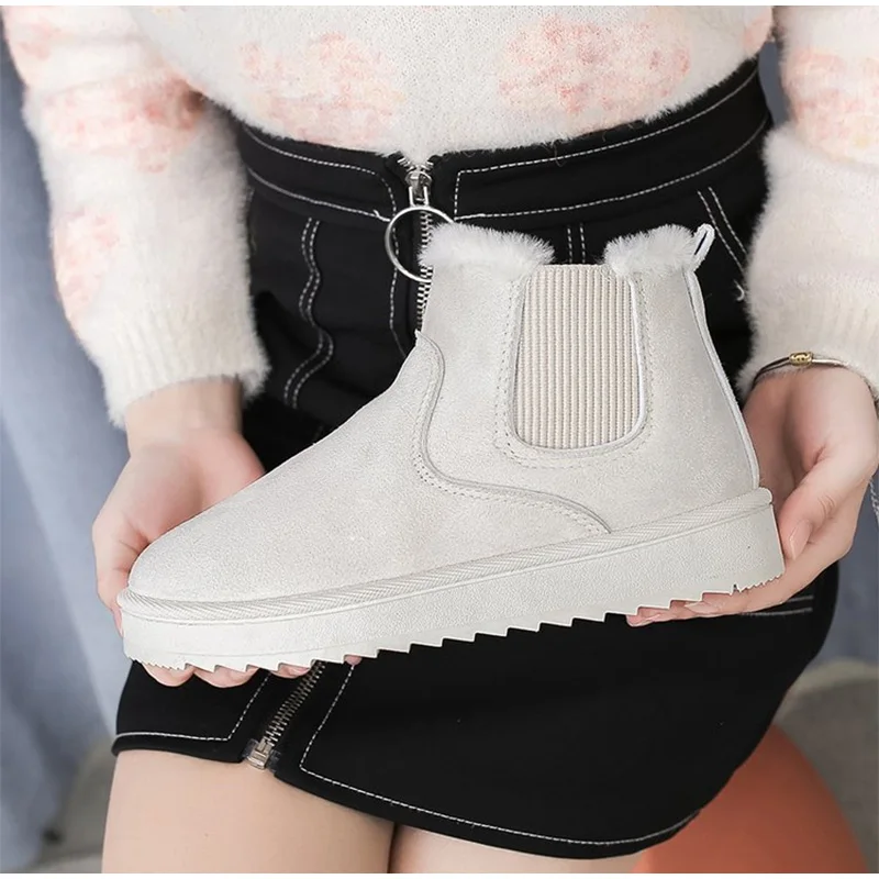 Женские зимние ботинки, плюшевые теплые женские короткие ботинки, замша, Женская хлопковая обувь, слипоны, повседневные женские ботильоны 2021, Зимняя мода