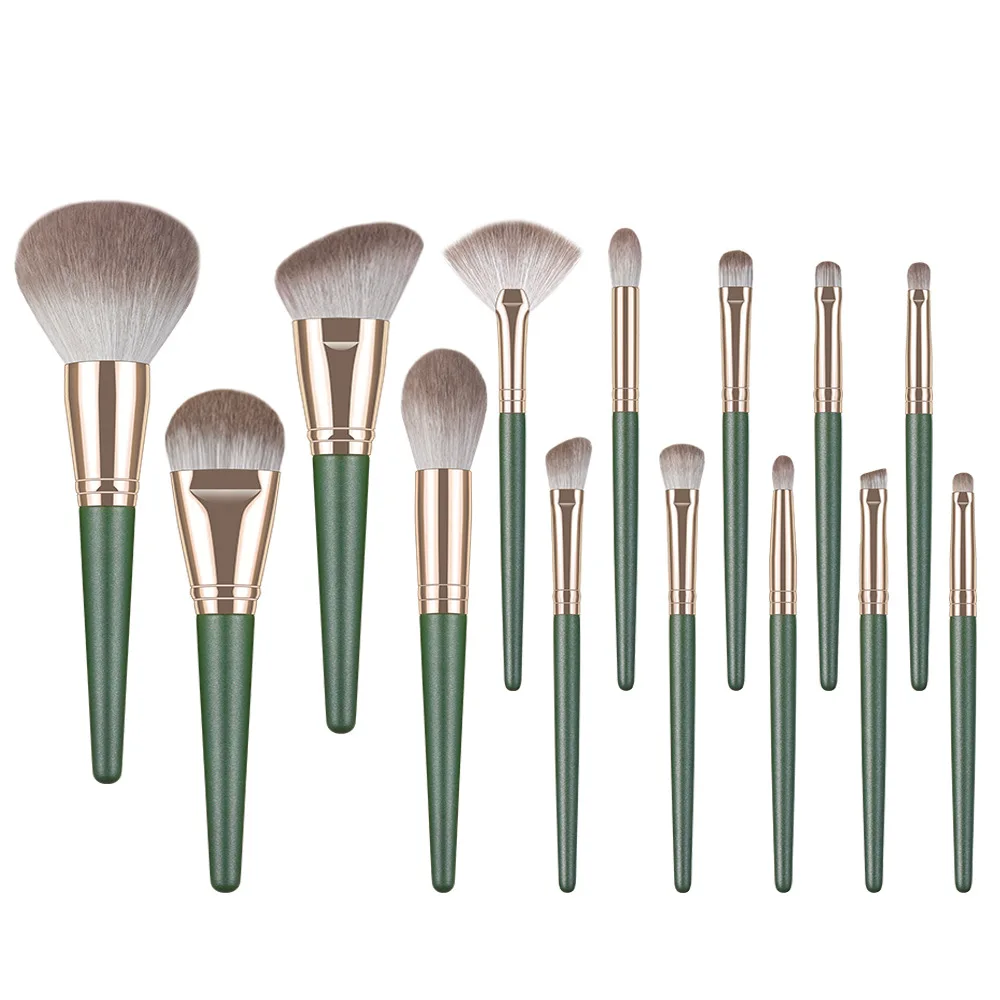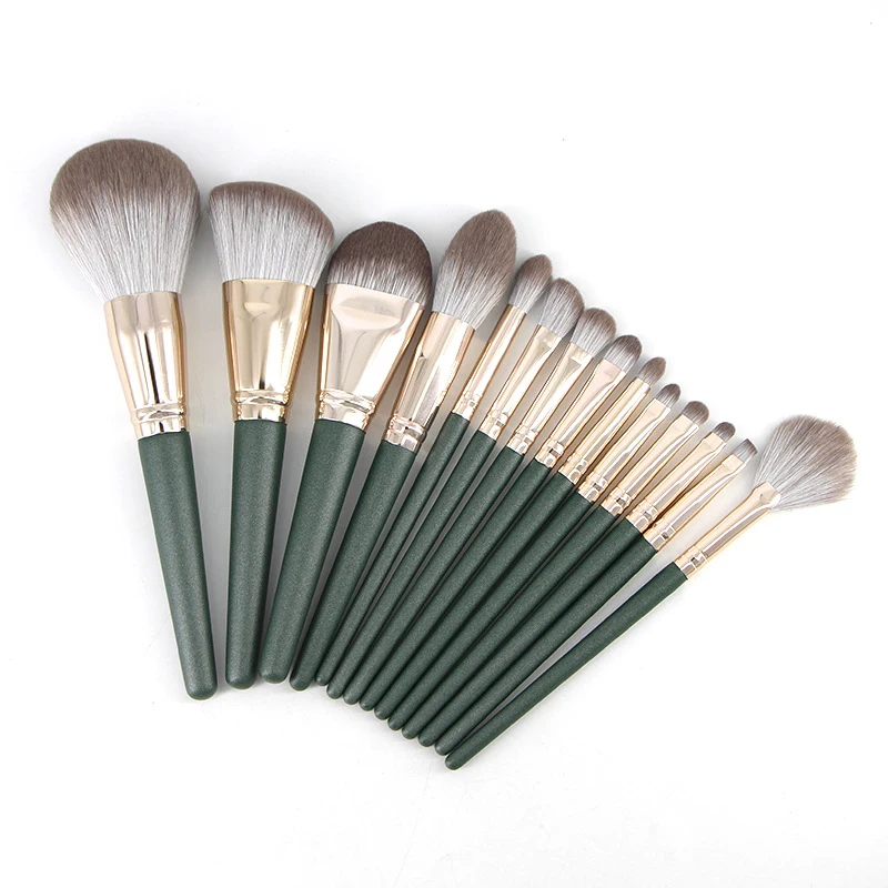 Набор профессиональных кистей для макияжа, 14 шт., зеленые кисти для растушевки теней, пудры, основы для бровей, косметические инструменты для лица и глаз