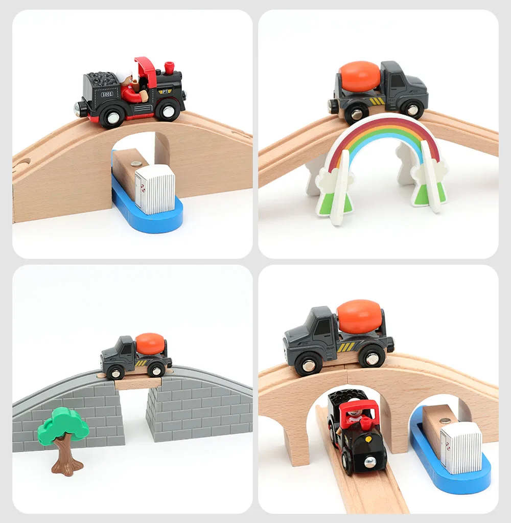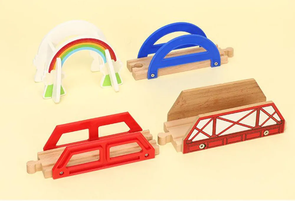 Деревянная железная дорога, мост, деревянная железная дорога, набор аксессуаров, гоночные дороги, подходит для Thomas, развивающие игрушки для детей