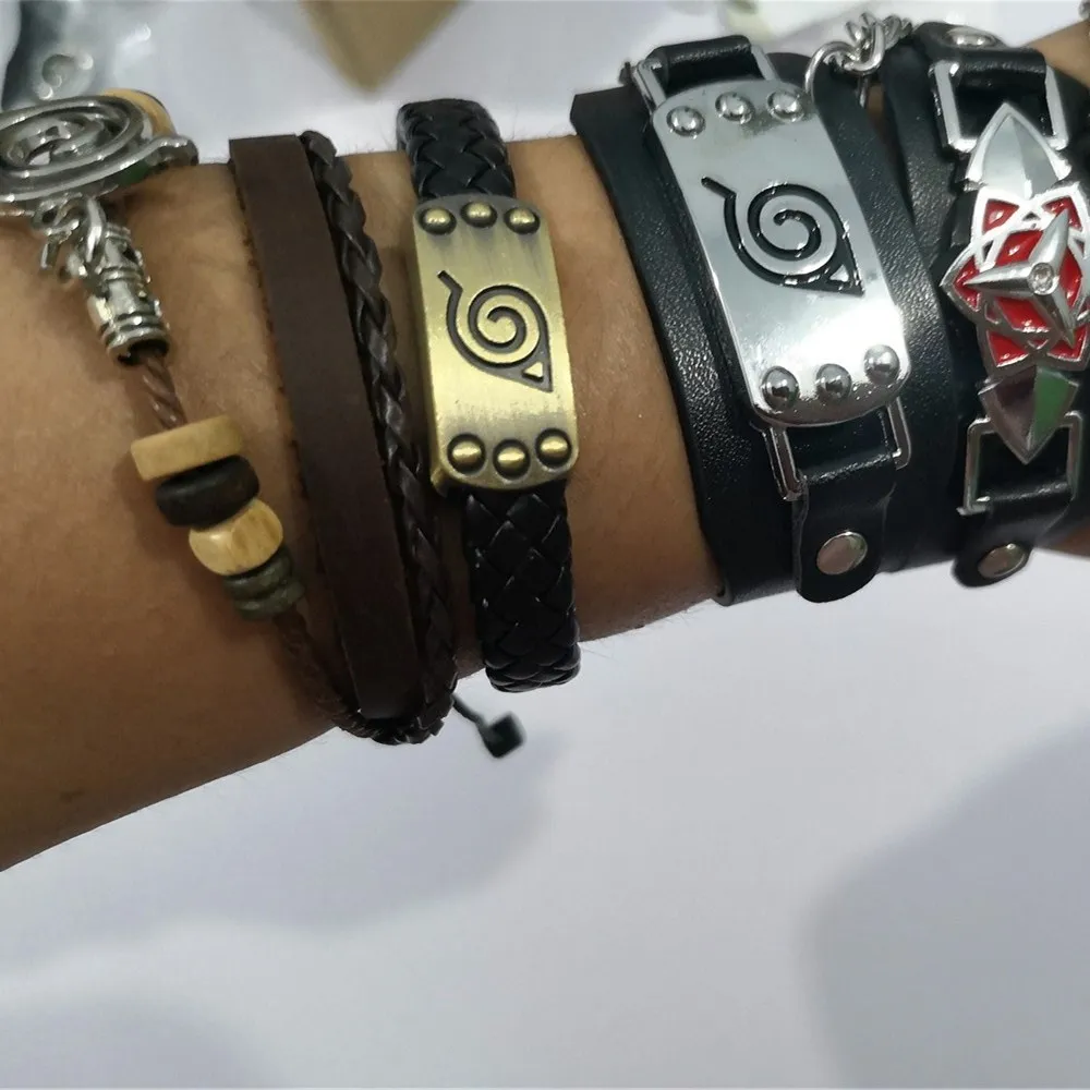 Японский аниме удзумаки Учиха Саске Коноха панк кожаный браслет кол...