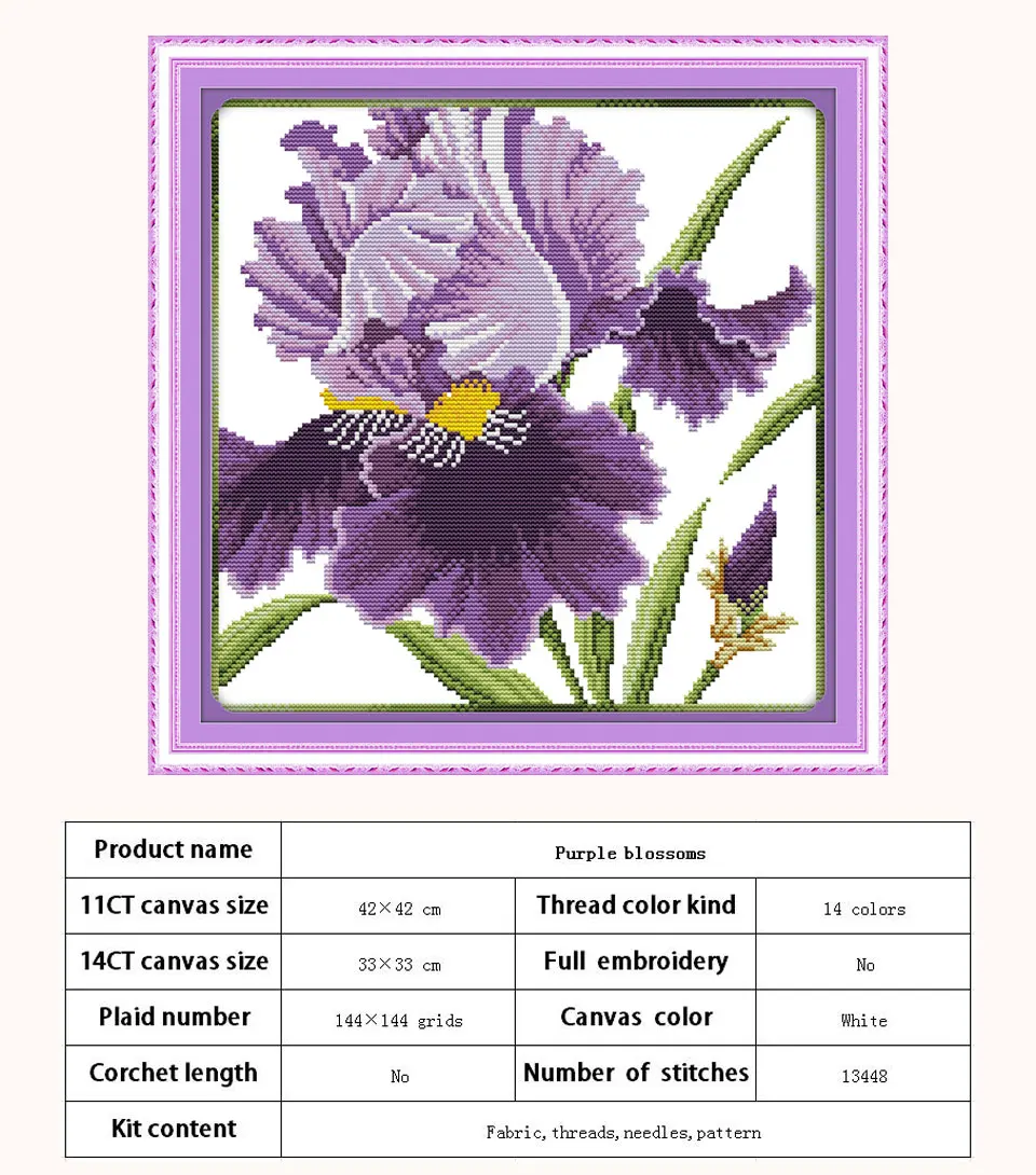 Цветок ириса Счетный крест Наборы печатная ткань для вышивания 11CT...