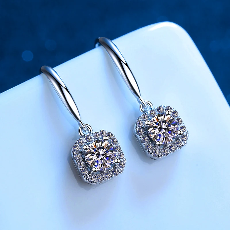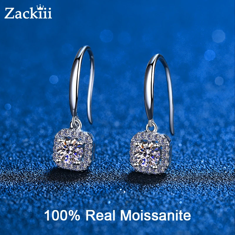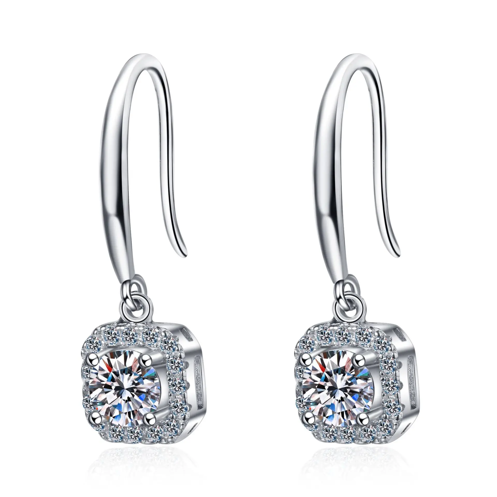 Серьги 1 карат с муассанитом для женщин 925 Висячие серьги из серебра 925 пробы 14K с покрытием из белого золота серьги-подвески с бриллиантами для лаборатории Ювелирные изделия