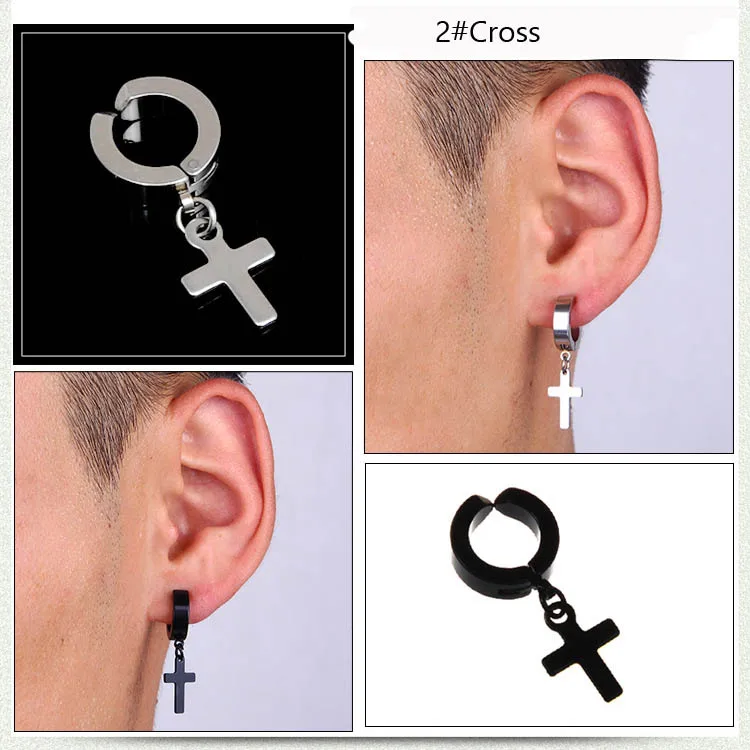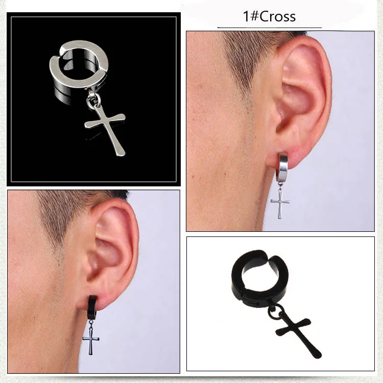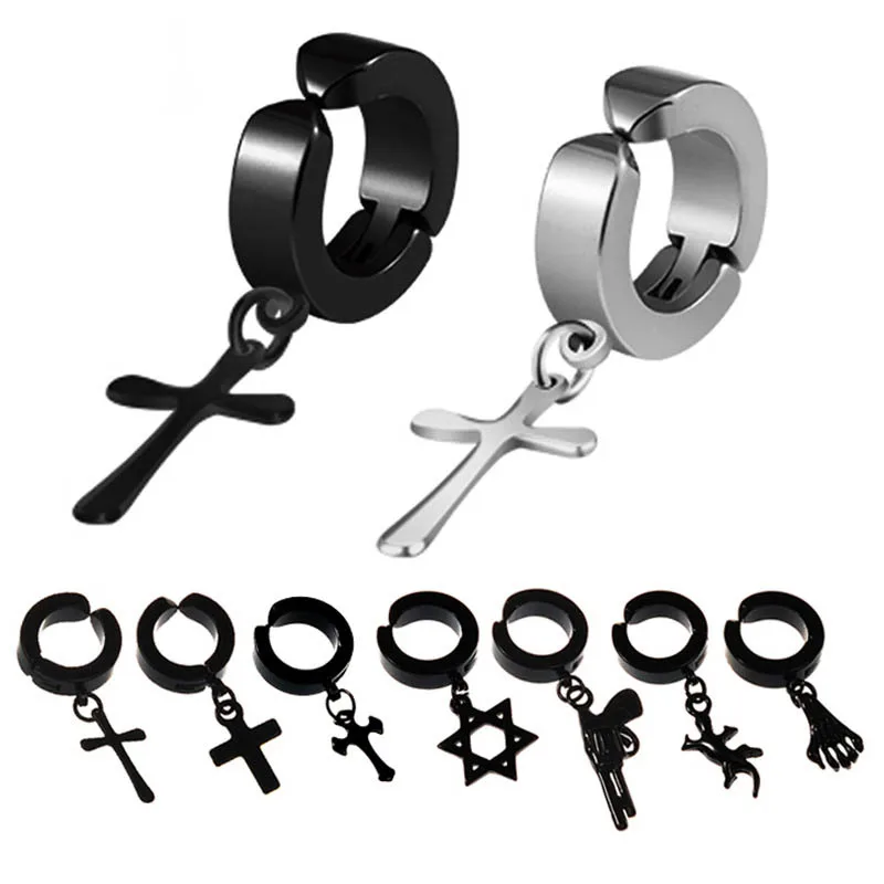 Серьги-клипсы с подвеской в виде Креста из нержавеющей стали в стил...