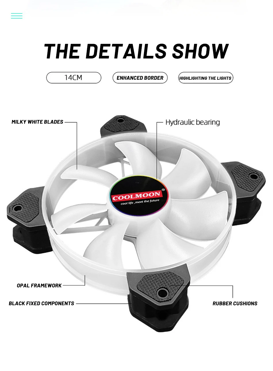 Вентилятор охлаждения 35EA COOLMOON Yuhuan, 140 мм, бесшумный, RGB ...