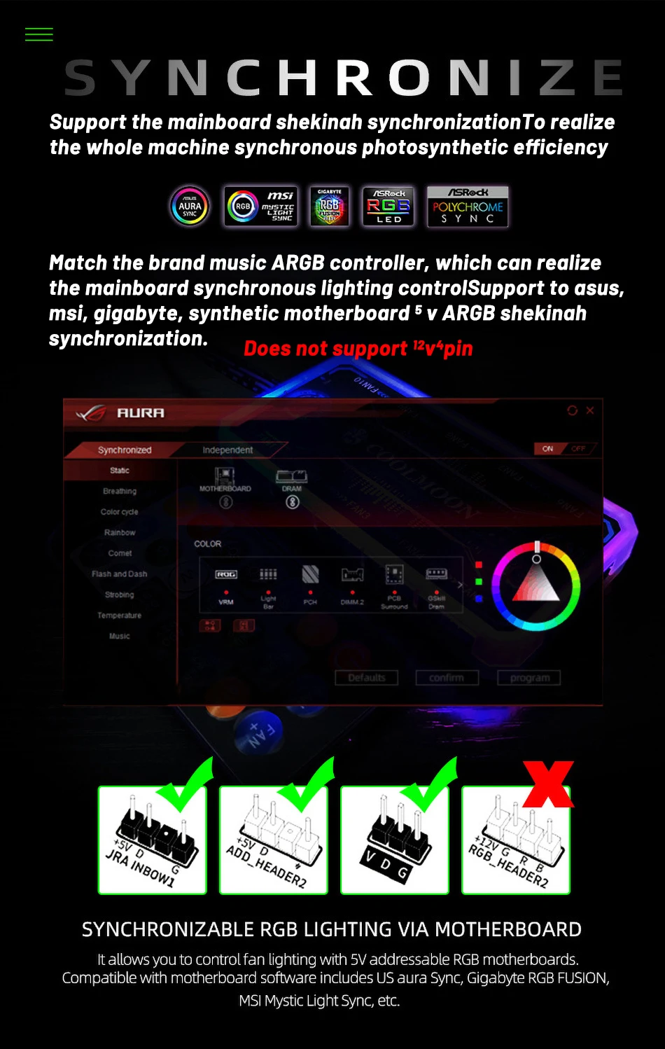 H55F COOLMOON Yuhuan 140 мм охлаждающий вентилятор бесшумный RGB 6P...