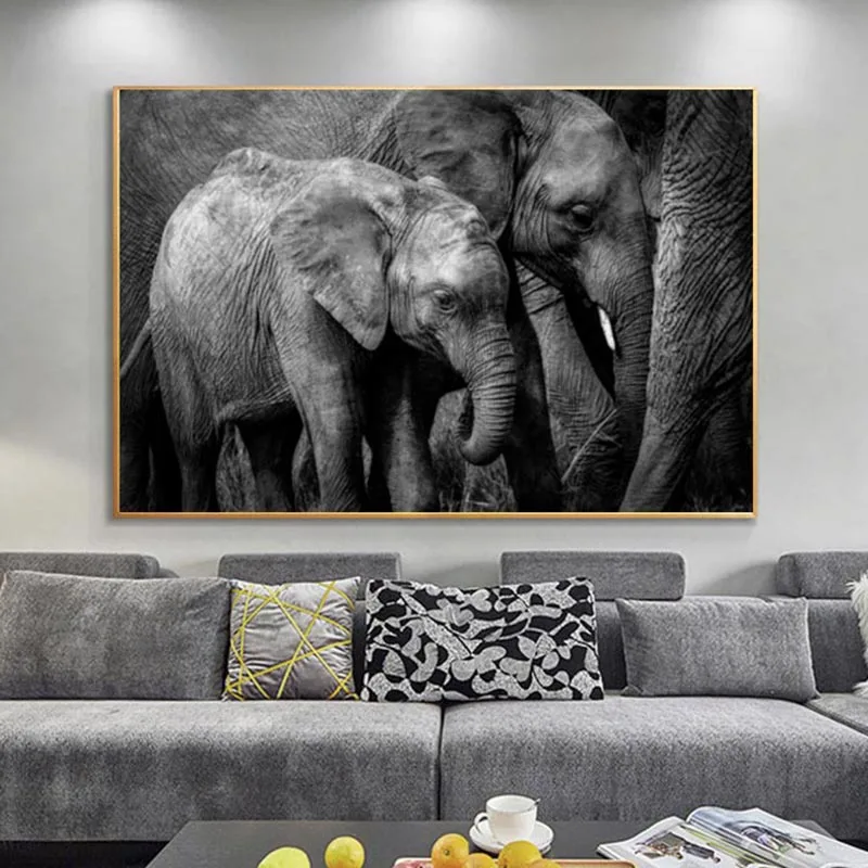 Животные, Картина на холсте, настенное искусство, слон, семейные холсты, постеры и принты, дикие животные, настенные картины для декора гостиной