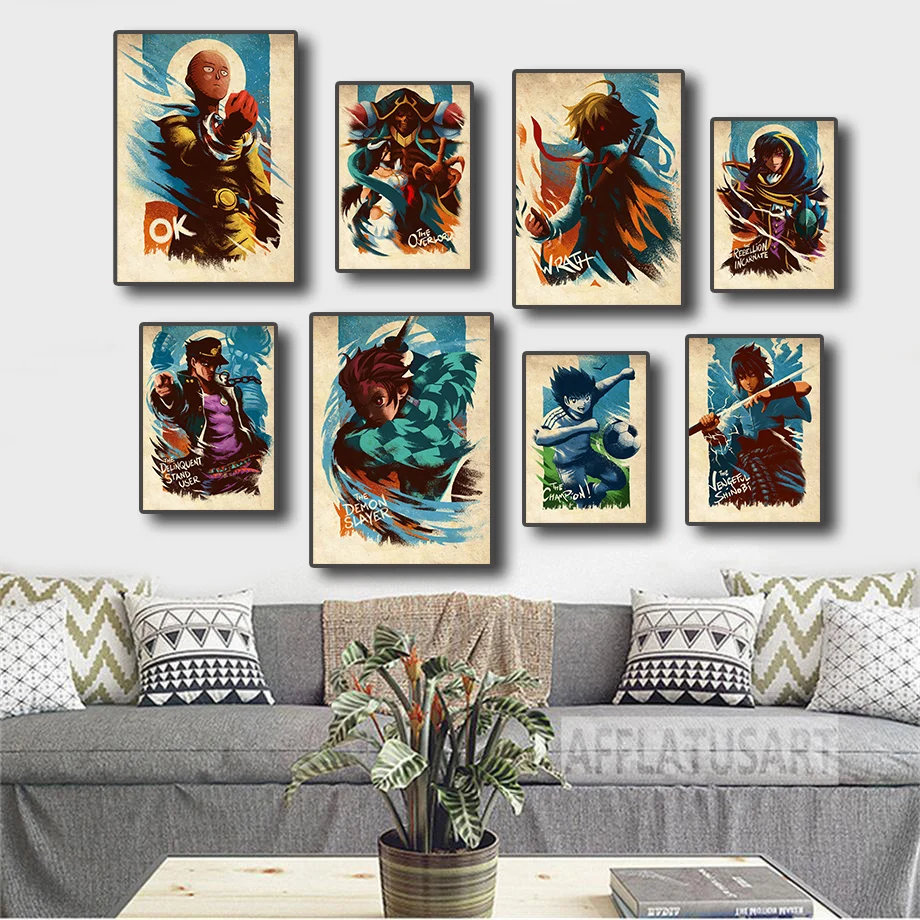 Мультяшный Ретро японский аниме цельный Луффи художественный декор ...
