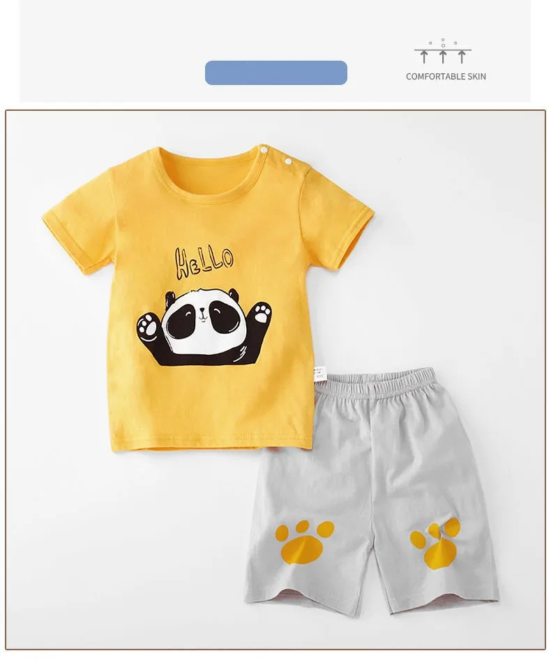 Для маленьких девочек Летняя, детская одежда, футболка с коротким рукавом + штаны, комплект из 2 вещей, костюм для детей ясельного возраста; Симпатичные комплекты одежды для маленьких мальчиков детские футболки с героями мультфильмов, верхняя одежда