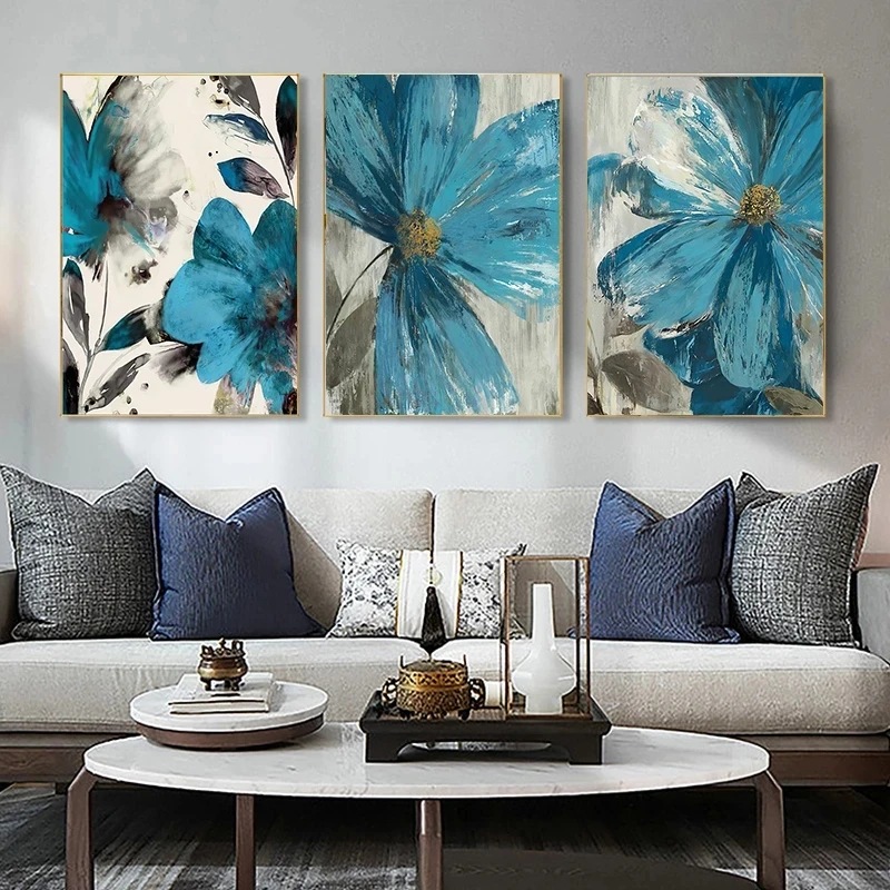 Винтажный постер с изображением синих цветов на холсте, абстрактный...