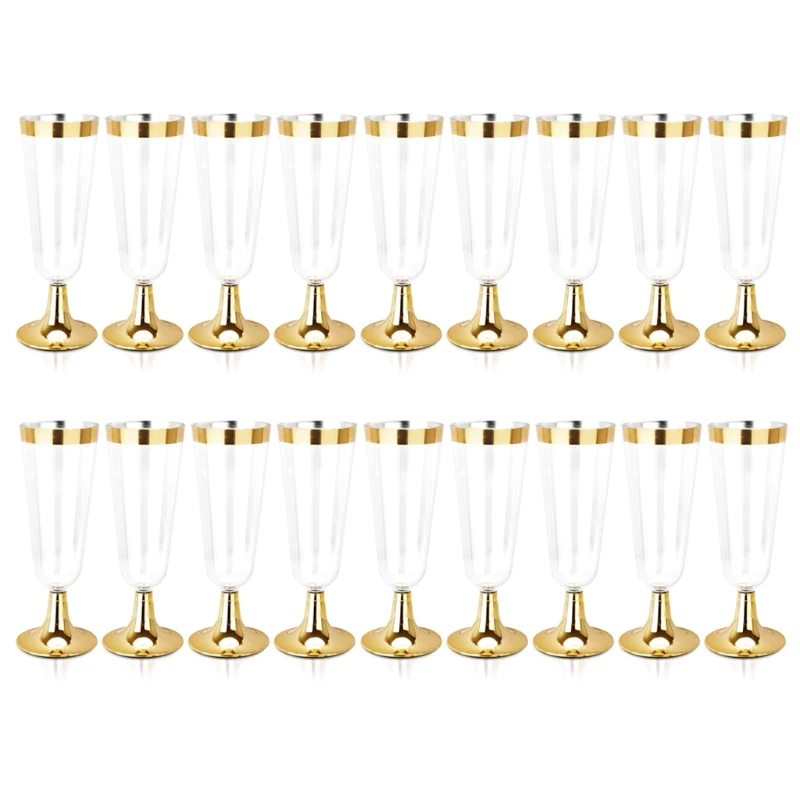 20 шт., Золотые пластиковые бокалы для шампанского, 5 унций, пластиковые бокалы для шампанского с золотой каймой, одноразовые золотые бокалы высокого качества